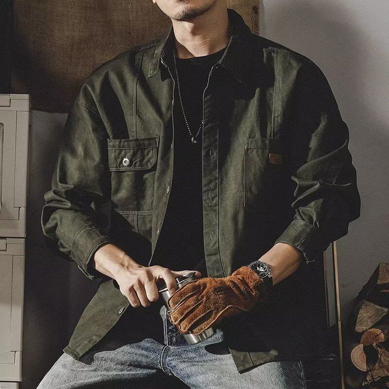 这款美式复古工装衬衫男秋季宽松大码硬汉猎装夹克外套,融合经典美式工装风格与现代潮流设计,采用厚实耐磨的棉质面料,挺括有型,适合春秋季节穿搭。宽松剪裁兼顾舒适与随性,大码版型包容性强,轻松驾驭多种身材。细节上配备多口袋设计,兼具实用性与硬朗气质,肩线利落,领口挺括,尽显硬汉风范。无论是搭配牛仔裤还是工装裤,都能轻松打造复古潮酷造型,是追求个性与质感男士的秋季必备单品,彰显不羁态度与复古型格。