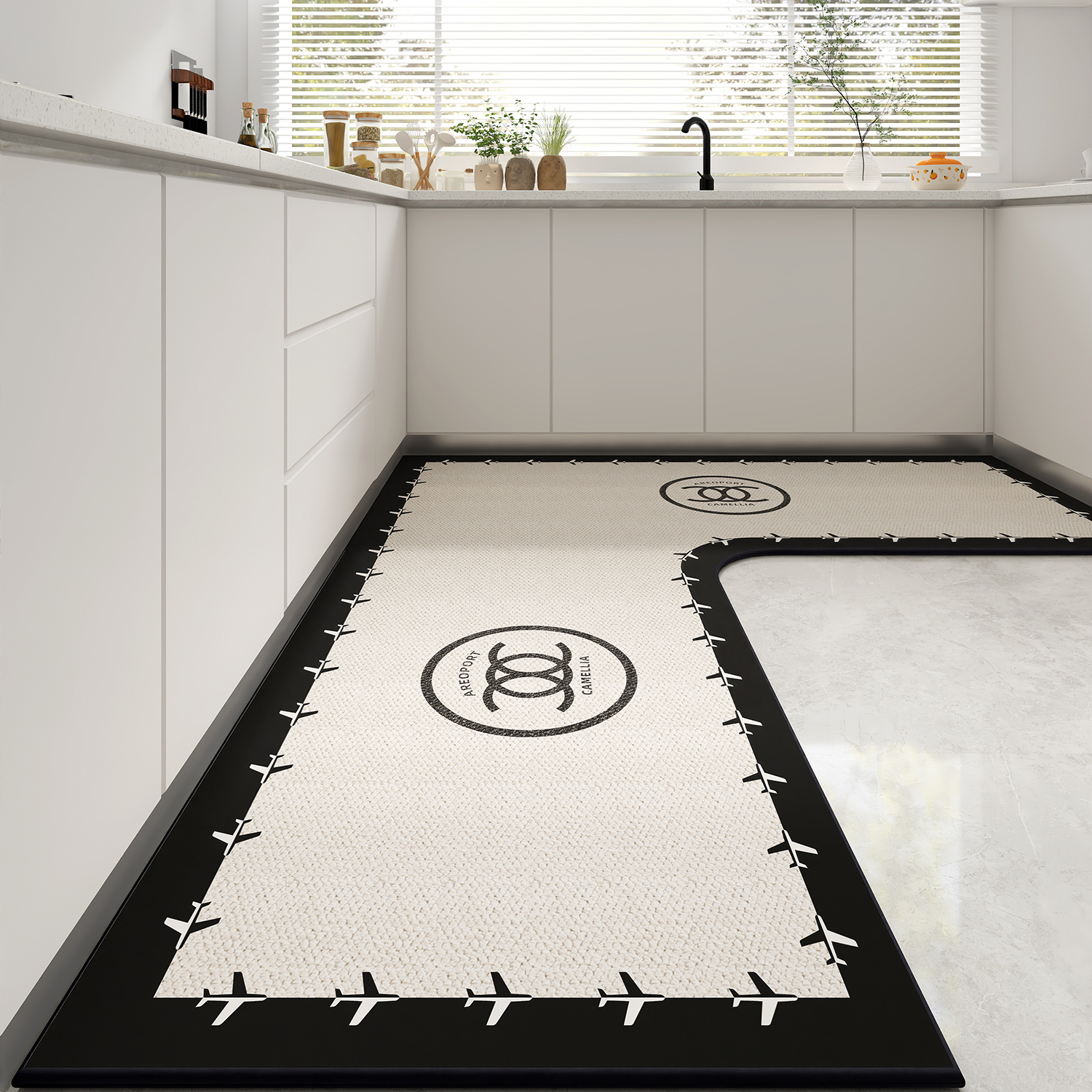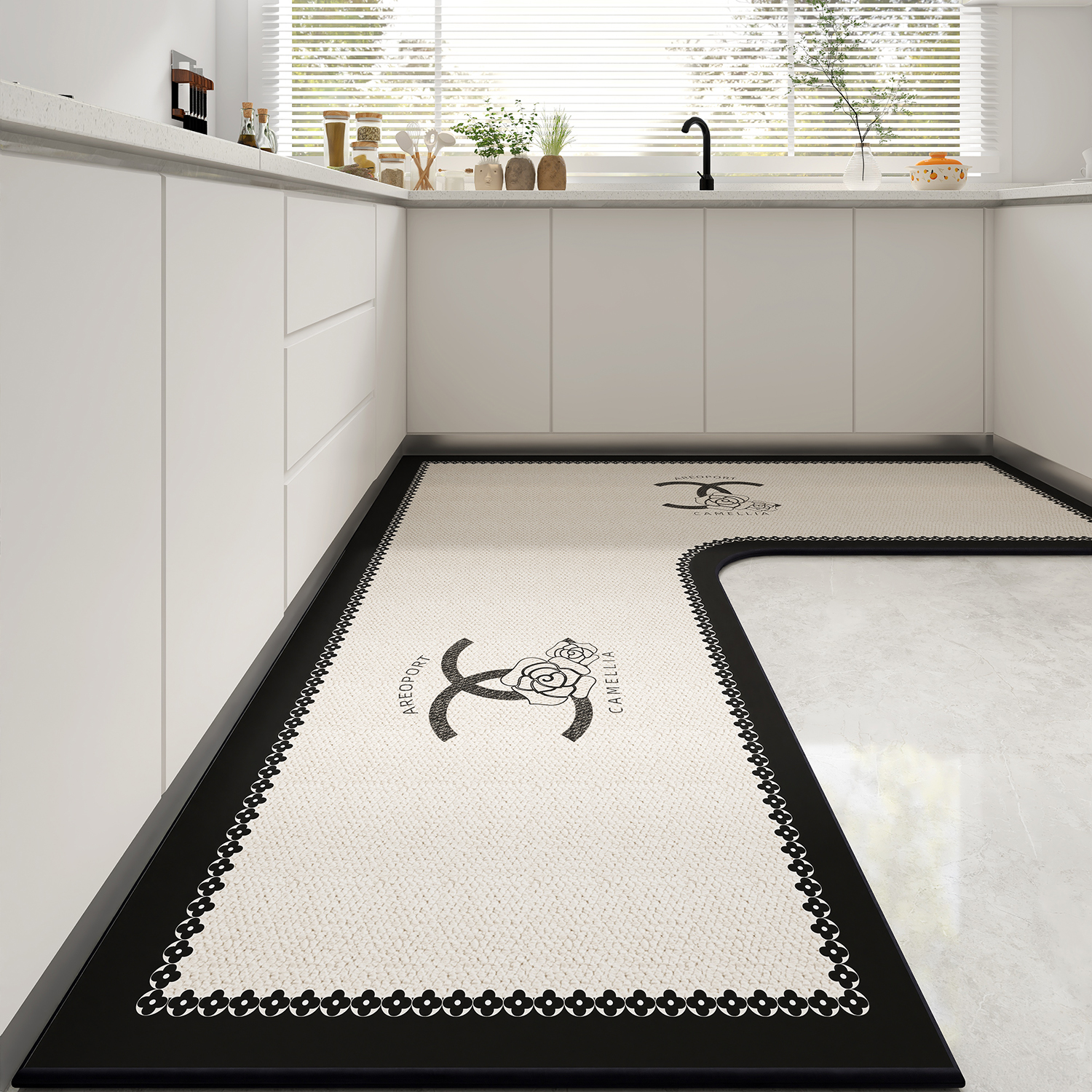 天猫L型厨房地垫专用小香风简约复古吸水吸油防滑耐脏脚垫定制可裁剪