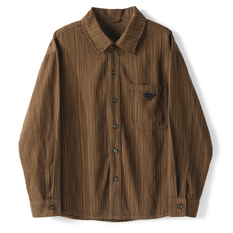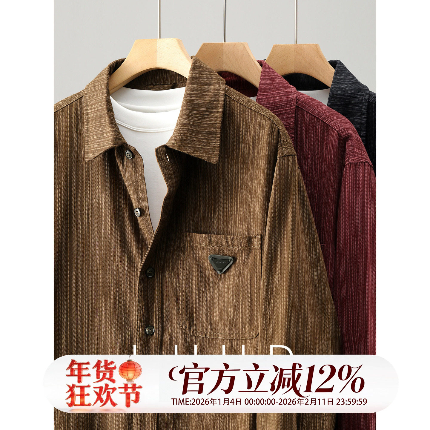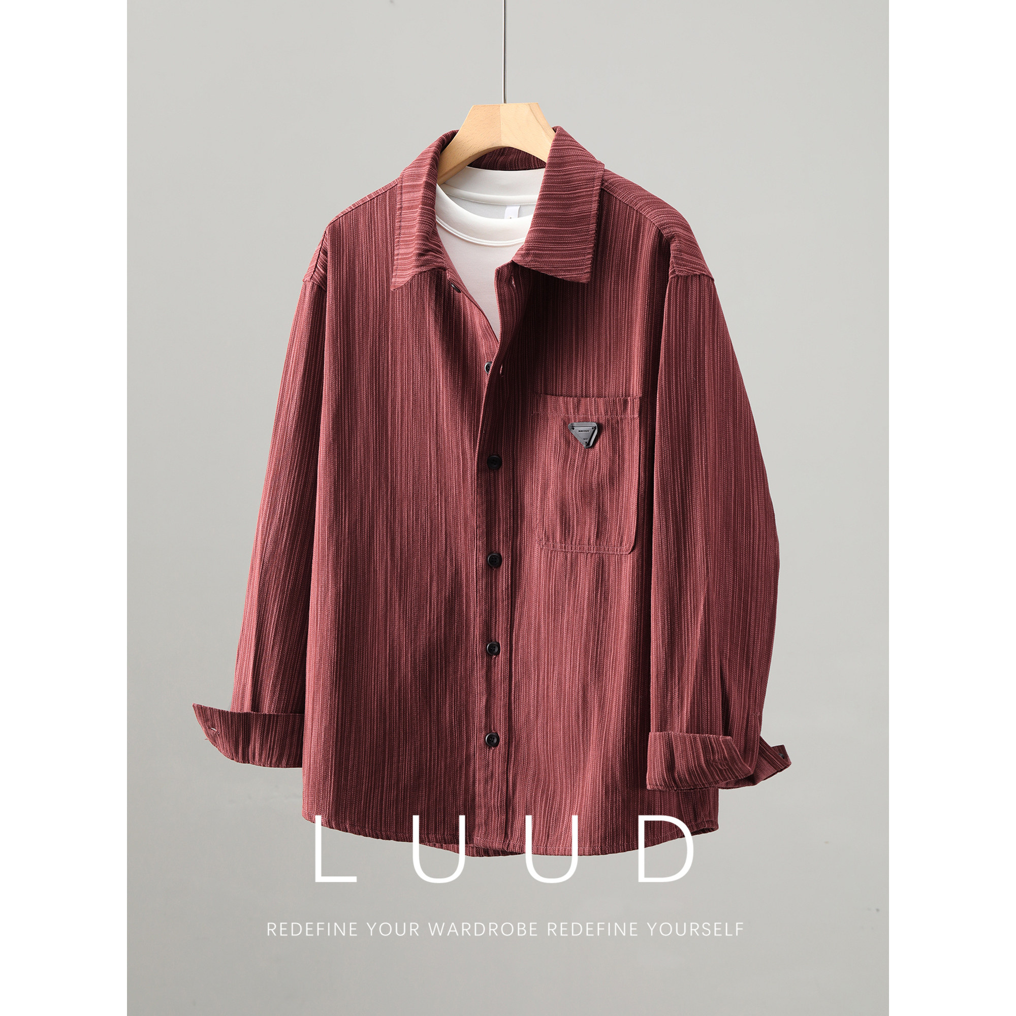 淘宝LUUD 美式老钱风竖纹肌理倒三角贴标装饰衬衫外套男早春长袖衬衣