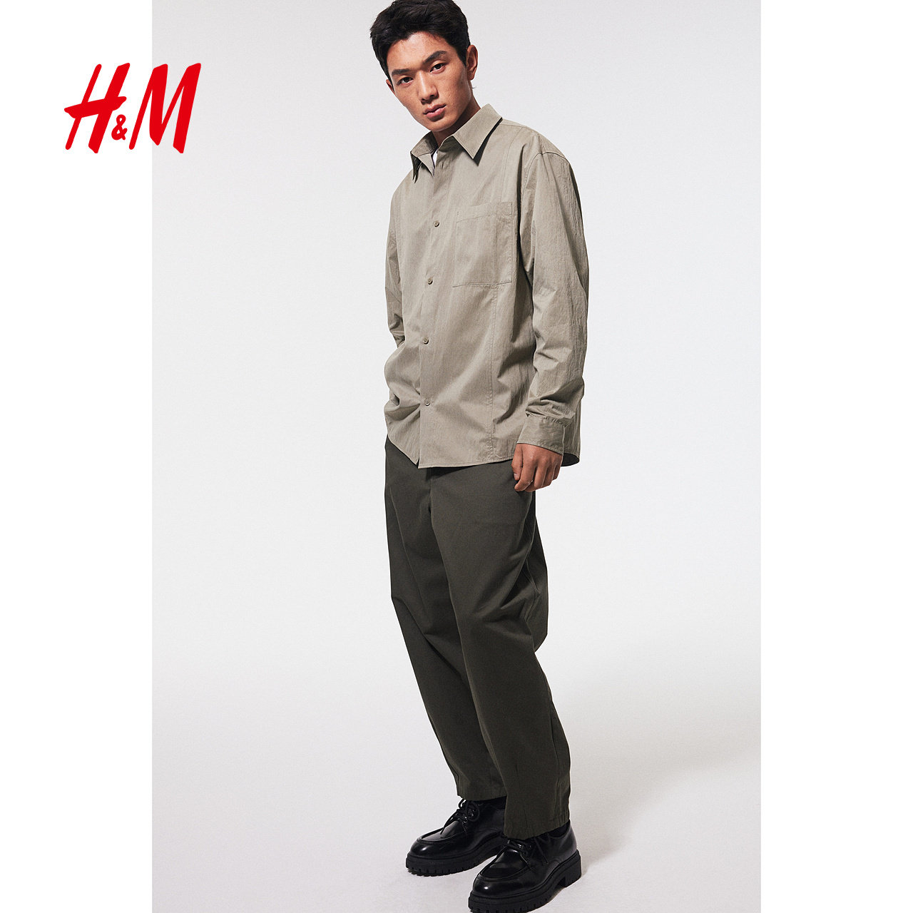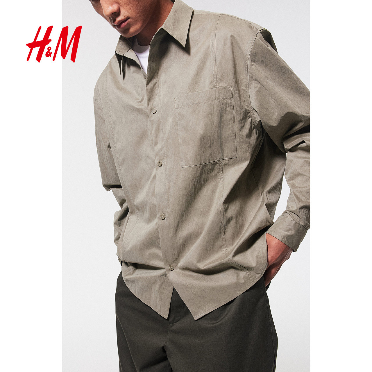 天猫HM男装衬衫春季宽松长袖内搭开衫1265236