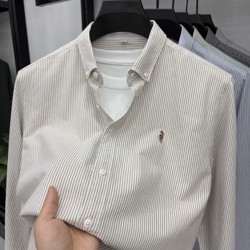 2025秋季新款纯棉条纹长袖衬衫商务休闲磨毛衬衣青年上衣外套男装