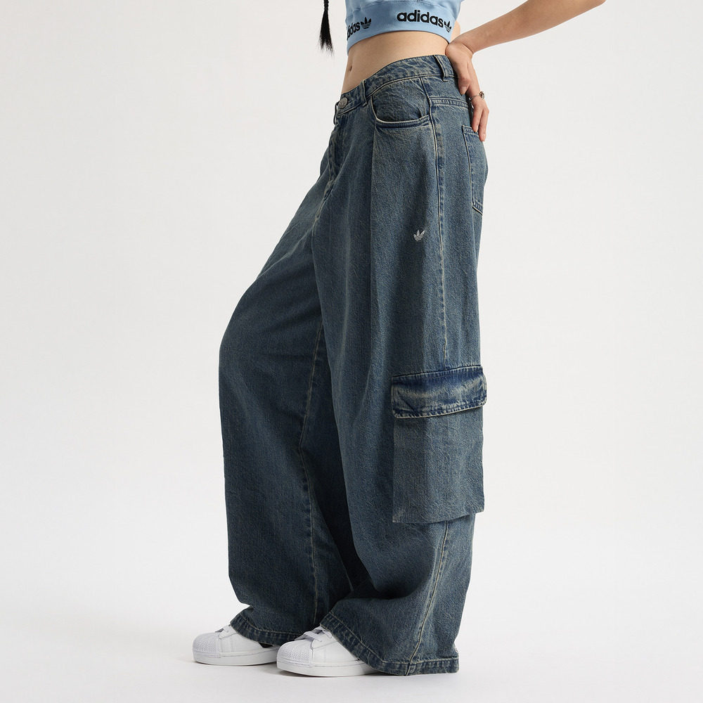 天猫牛仔运动多口袋工装裤女装adidas阿迪达斯官方outlets三叶草