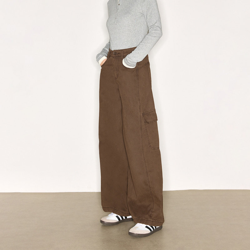 天猫Jamor加墨时尚多口袋咖色工装裤子显瘦阔腿女装2025秋冬新款