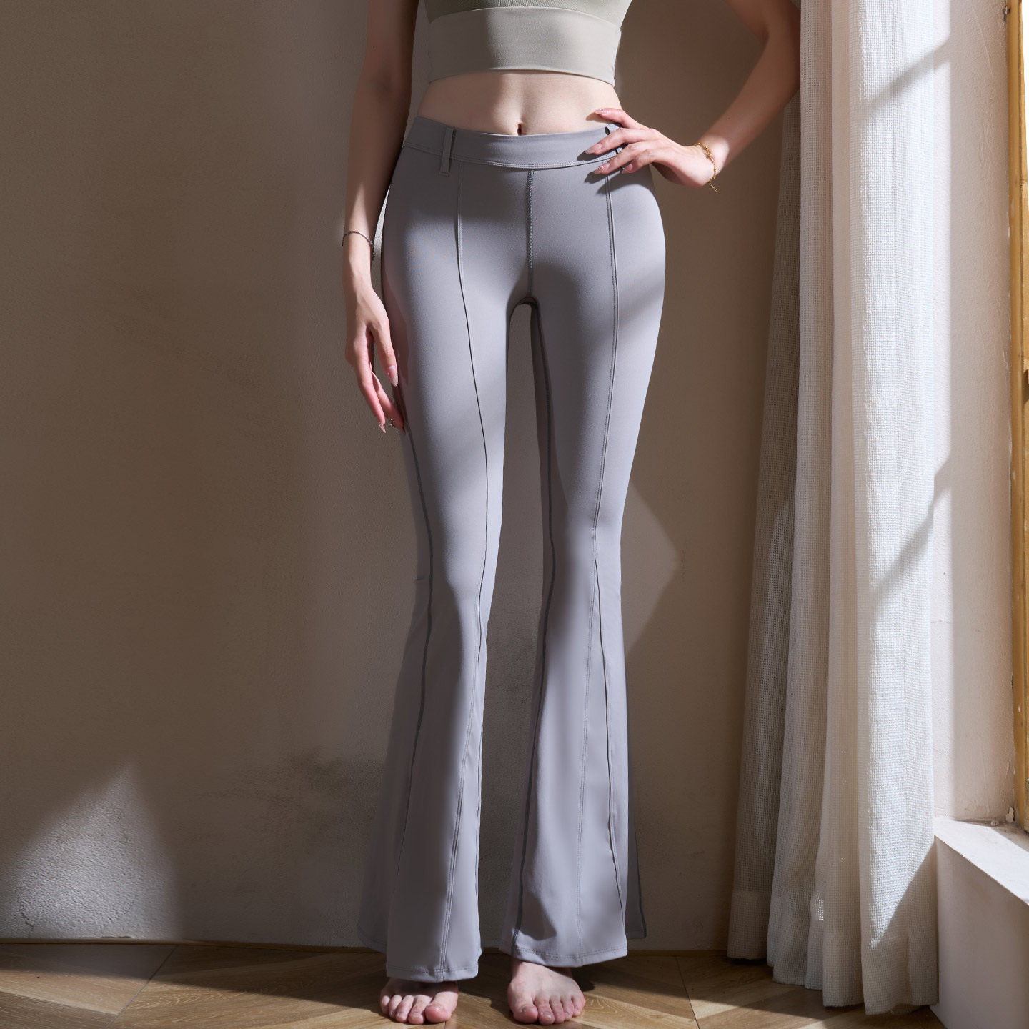 yoyomeat工装口袋微喇叭阔腿瑜伽长裤,专为追求舒适与时尚的女性设计。高腰剪裁有效收腹提臀,塑造蜜桃翘臀曲线,展现迷人身材比例。采用高弹透气面料,亲肤柔软,运动时无束缚感,适合瑜伽、健身、日常通勤等多种场景。微喇叭阔腿版型修饰腿型,视觉拉长腿部线条,搭配侧边工装口袋设计,兼具实用性与潮流感。无论是运动还是出街,都能轻松驾驭,彰显自信活力。yoyomeat以细节诠释品质,是女性运动穿搭的理想之选,让美丽与舒适并存。