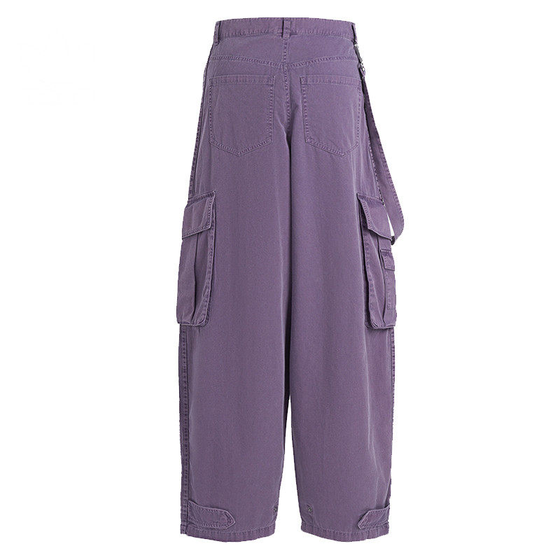 大码美式复古解构多口袋工装牛仔裤女设计感宽松直筒显瘦阔腿长裤