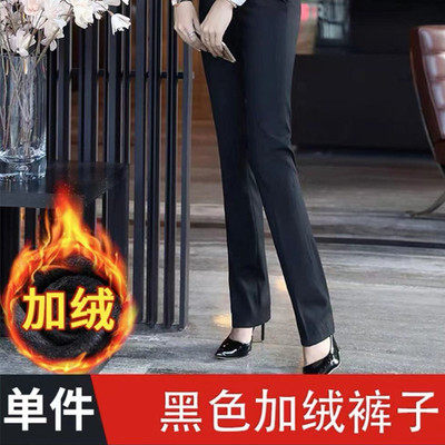 淘宝加绒加厚西裤女士长裤胖mm200斤大码高腰直筒藏蓝弹力职业工装裤