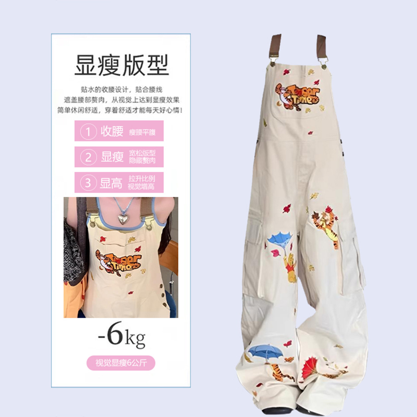 这款大码美式甜酷风卡通刺绣阔腿牛仔背带裤,专为追求舒适与个性并存的胖MM设计。宽松的连体工装版型搭配高腰阔腿剪裁,巧妙修饰身形,轻松穿出松弛感。精选优质牛仔面料,挺括有型又不失柔软透气。胸前精致卡通刺绣点缀,融合甜美与酷飒,展现独特少女态度。可调节背带设计,适配不同身高与穿搭需求,日常搭配T恤或卫衣皆宜。无论是出街、约会还是休闲聚会,都能让你自信出彩,轻松驾驭美式街头潮流,做最自在又时髦的自己。