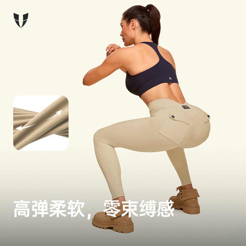 天马甲线户外健身裤女跑步运动长裤蜜桃臀工装压缩带后口袋瑜伽裤子