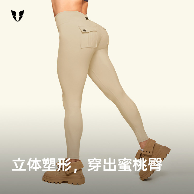 马甲线户外健身裤女跑步运动长裤蜜桃臀工装压缩带后口袋瑜伽裤子