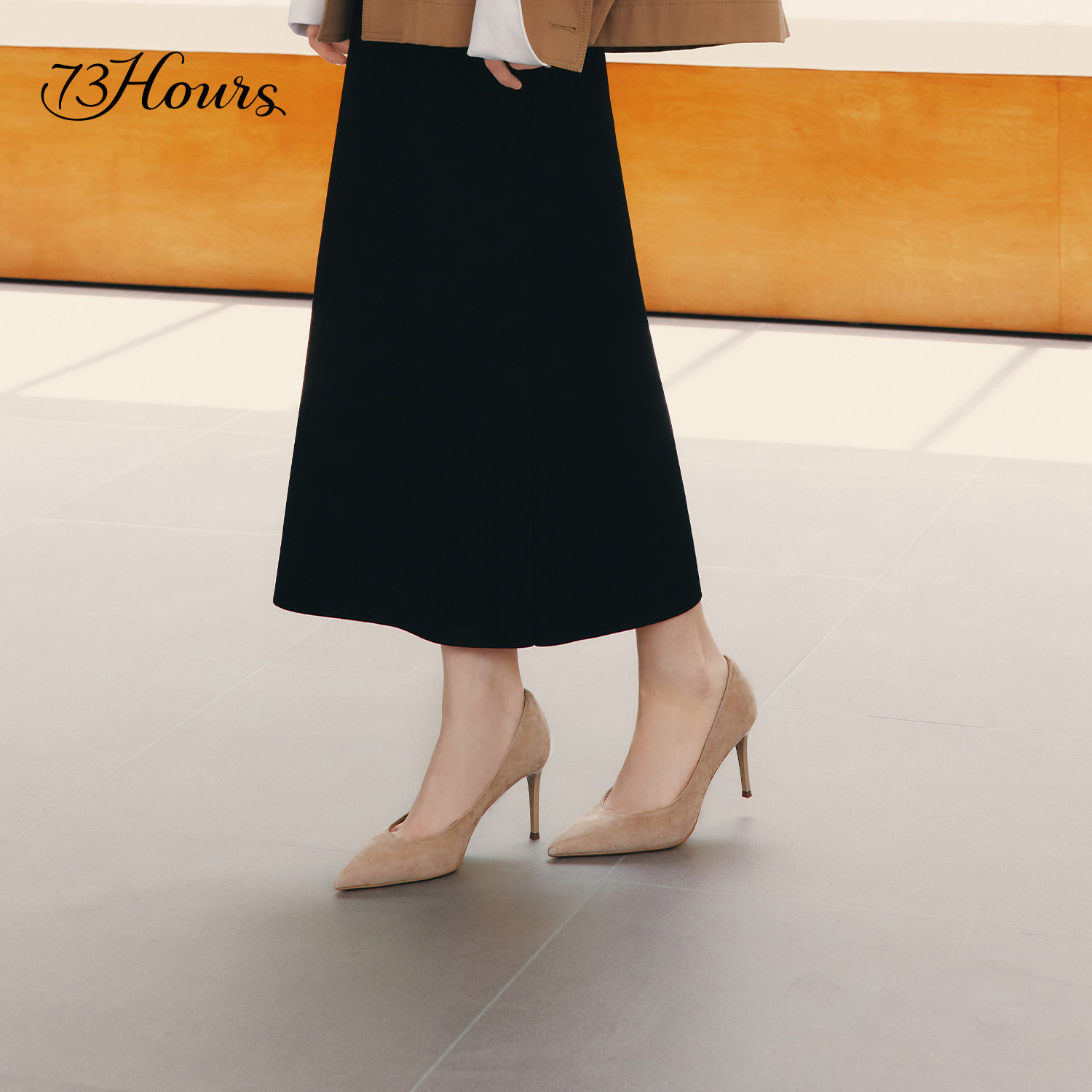 73hours 2025秋季新款高跟鞋,以“舒展氛围”为设计理念,融合都市通勤与职场气质,打造优雅与舒适兼具的细跟单鞋。精选优质柔软皮革,贴合脚型,减轻行走压力;纤细却不失稳固的鞋跟,提升整体线条感,展现女性自信步伐。简约流畅的鞋面设计,搭配经典配色,轻松驾驭办公、会议或日常出行等多种场合。内里采用透气缓震材质,长时间穿着依然舒适自在。73hours始终秉持“为女性双脚减负”的初心,让每一步都从容舒展,演绎现代职场女性的独立与优雅。