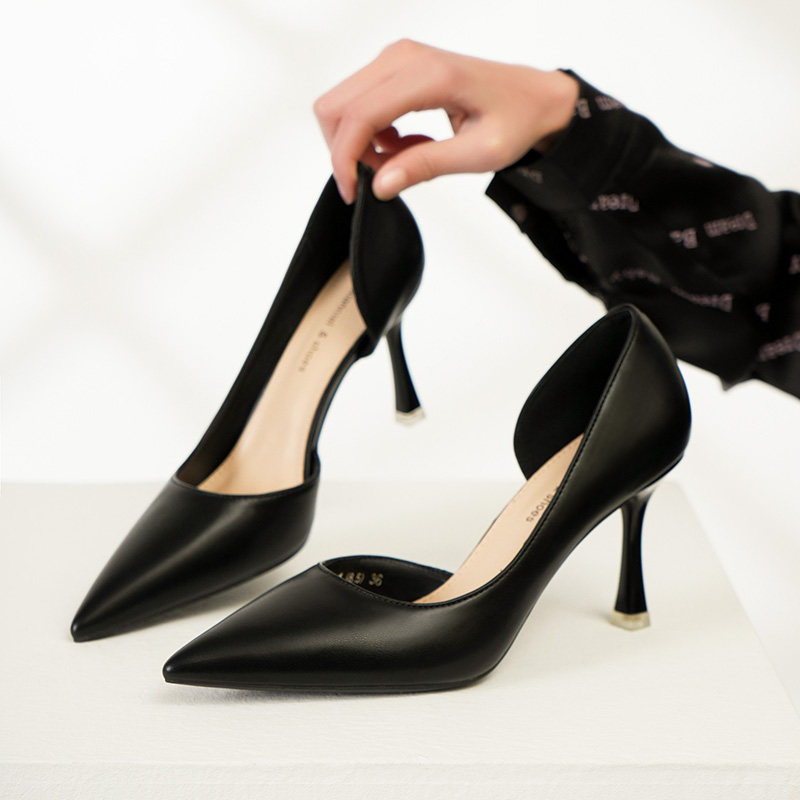 大东通勤鞋女鞋2026春季新款简约细跟高跟套脚尖头光版C0803
