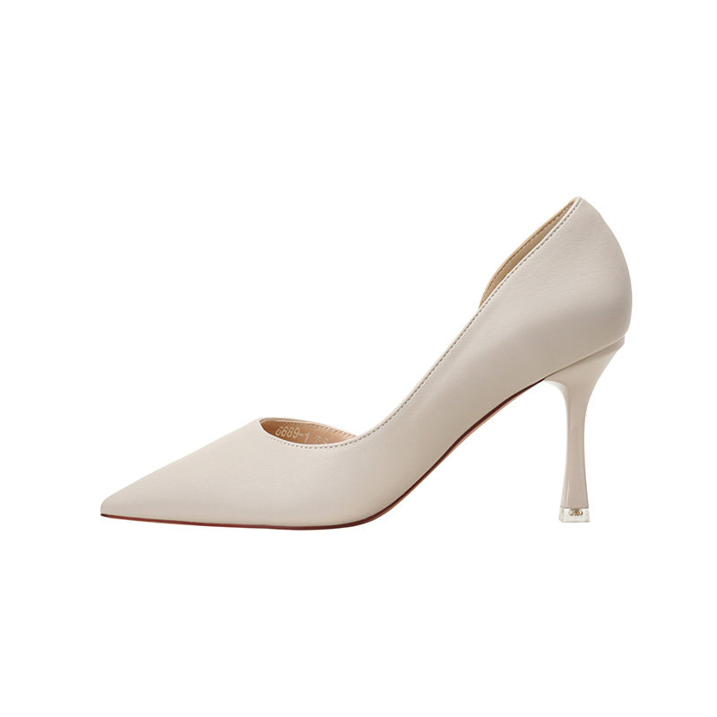 淘宝软皮裸色高跟鞋女2026年新款尖头浅口性细跟感侧空单鞋职业工作鞋