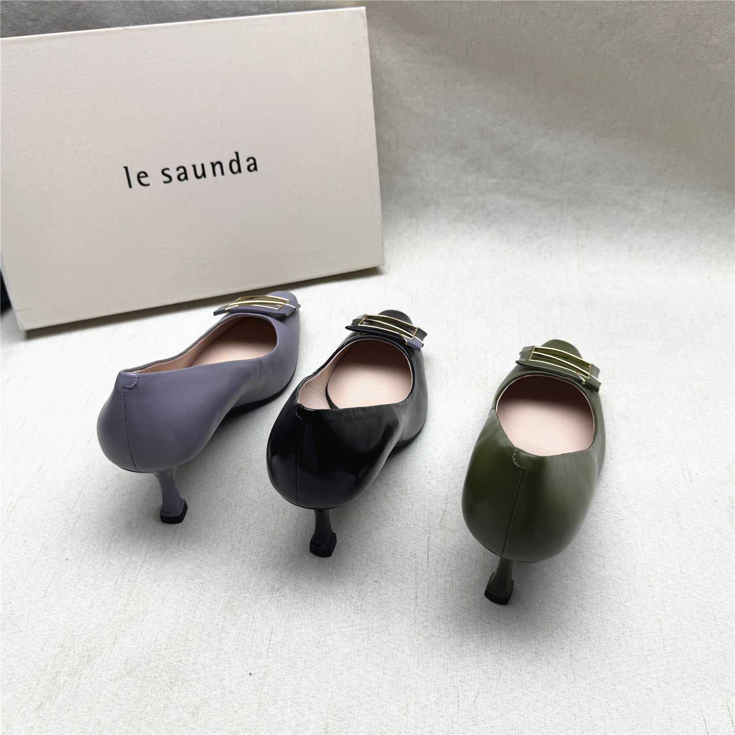 Lesaunda(莱尔斯丹)撤柜正品时尚高跟小方头时装鞋,精选优质羊皮材质,质感柔软细腻,穿着舒适透气。经典小方头设计融合现代时尚元素,线条利落优雅,轻松搭配裙装或裤装,展现都市女性的知性魅力。中高跟设计有效修饰腿部线条,兼顾美感与日常行走的稳定性。鞋面做工精致,走线工整,彰显品牌匠心工艺。此款为专柜撤柜正品,品质有保障,性价比极高,是追求品质与时尚并存女性的理想之选,适合通勤、约会或休闲等多种场合,演绎低调奢华的穿搭风格。