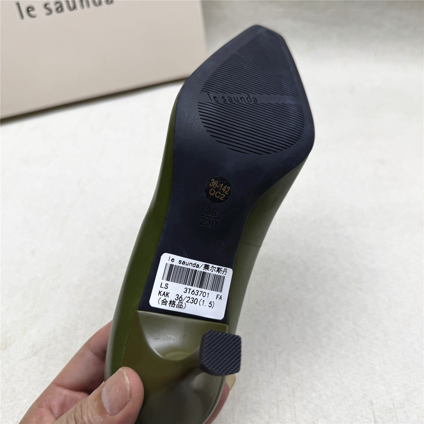 淘宝le saunda/莱尔斯丹撤柜正品时尚高跟小方头时装鞋女新款羊皮单鞋