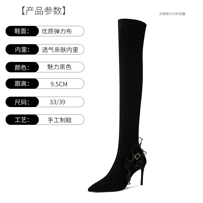 天猫丝袜靴细跟弹力长靴过膝盖秋冬新款气质蕾丝长筒高跟鞋尖头高筒靴