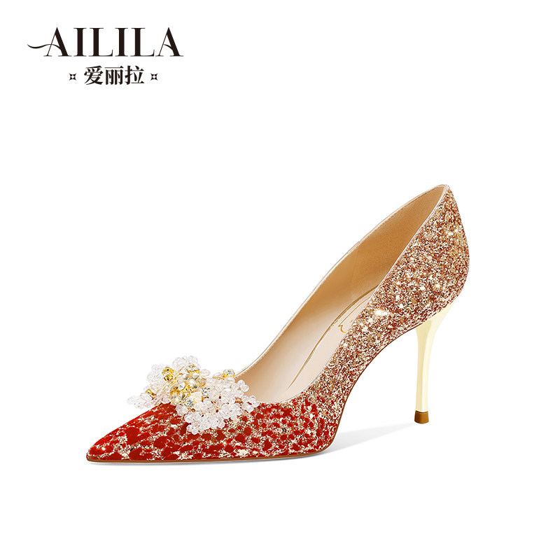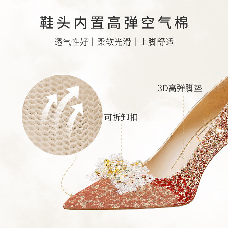 天猫爱丽拉红色绝美婚鞋女款2025新款中式秀禾服新娘水晶高跟鞋不累脚