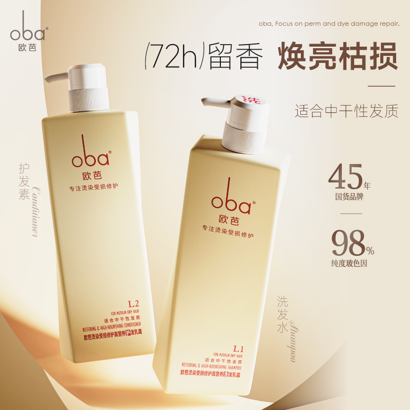 欧芭洗发水正品干枯毛躁洗发露乳洗护套装滋养受损修护女oba欧巴