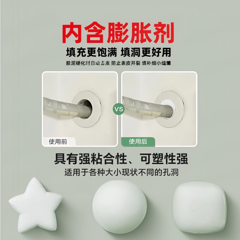 天猫密封胶泥下水道防臭防堵洞空调家用堵洞防漏防鼠墙孔防霉防虫防风