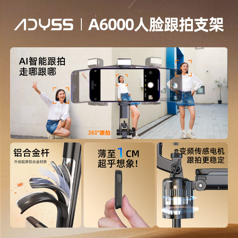 天猫叠品A6000智能AI跟拍云台2025新款自拍杆旅游便携360度旋转手机通用自拍神器自动人脸追踪直播支架落地四脚架