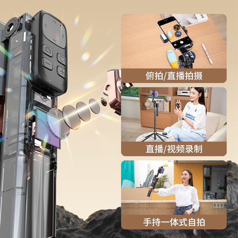 叠品A21P防抖手机户外拍摄支架自拍杆2025新款通用三脚架360旋转直播拍照神器抖音专用蓝牙一体式金属稳定器