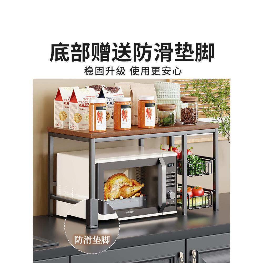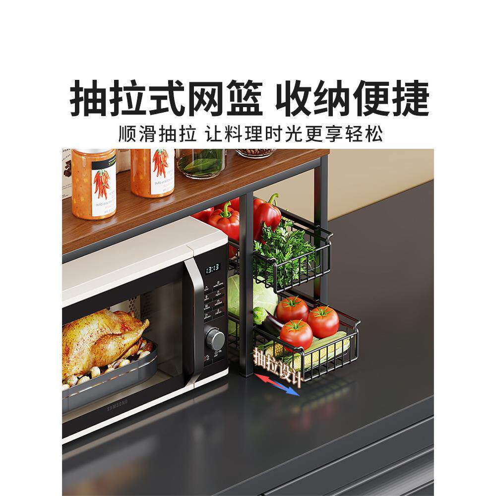 天中古厨房微波炉置物架抽拉式台面多功能加粗加厚电饭煲烤箱收纳架