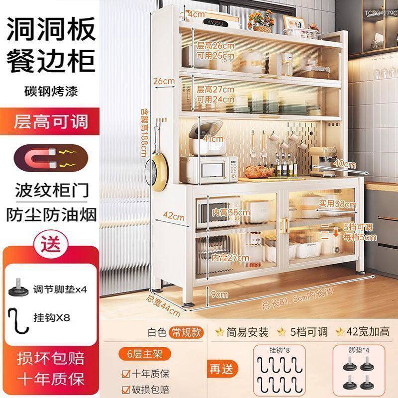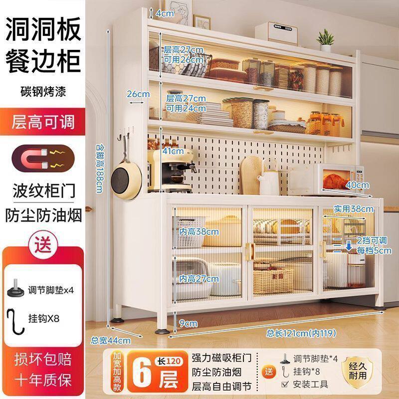 这款加宽落地多层厨房置物架餐边储物柜,专为现代厨房设计,兼具美观与实用性。采用稳固金属框架与环保板材,承重力强,安全耐用。多层开放式结构,可灵活收纳微波炉、烤箱、电饭煲等厨房家电,顶部加宽台面方便操作,侧边可挂厨具,提升空间利用率。底部设有储物格,适合存放调料、餐具或杂物,让厨房井然有序。简约风格适配多种家装,安装简便,清洁方便。无论是小厨房还是开放式餐厅,都能有效释放台面空间,打造整洁高效的烹饪环境,是提升居家生活品质的实用之选。
