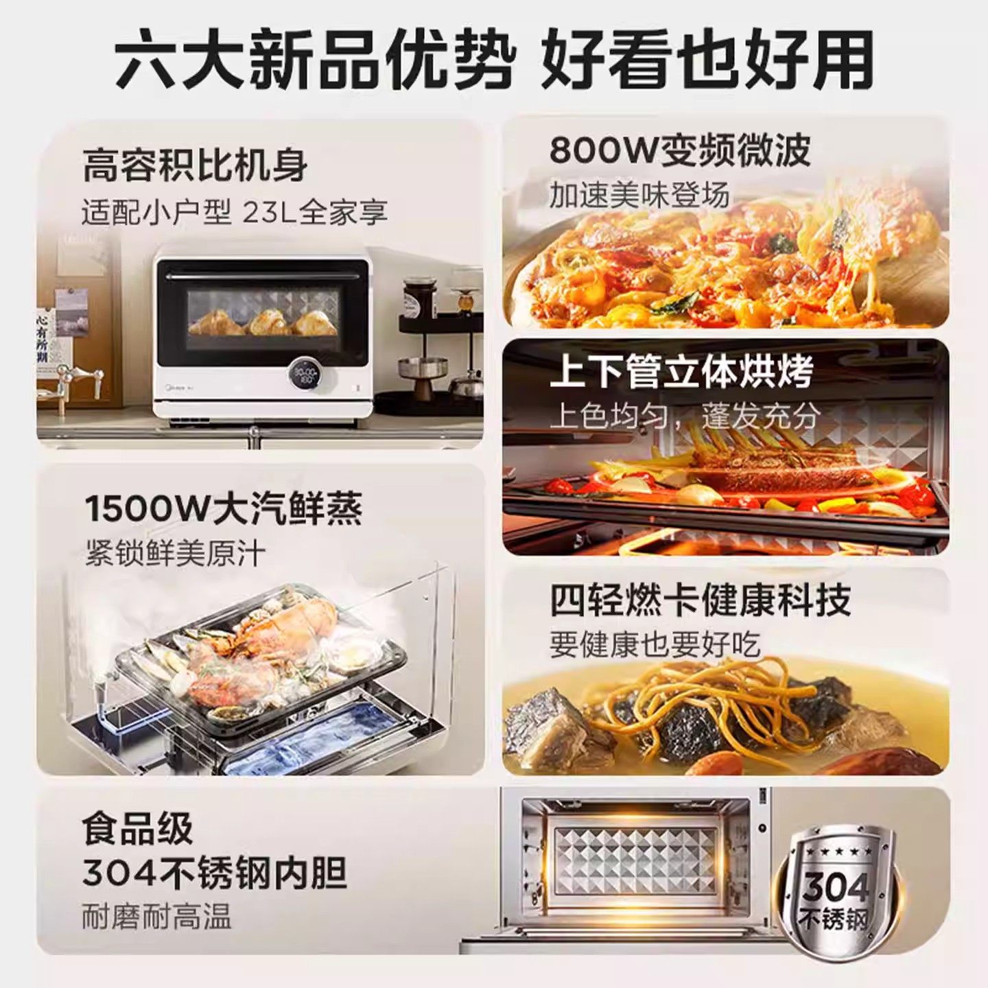 天猫美的寻味pro微蒸烤炸一体四合一变频家用微波炉烤箱蒸箱空气炸G23