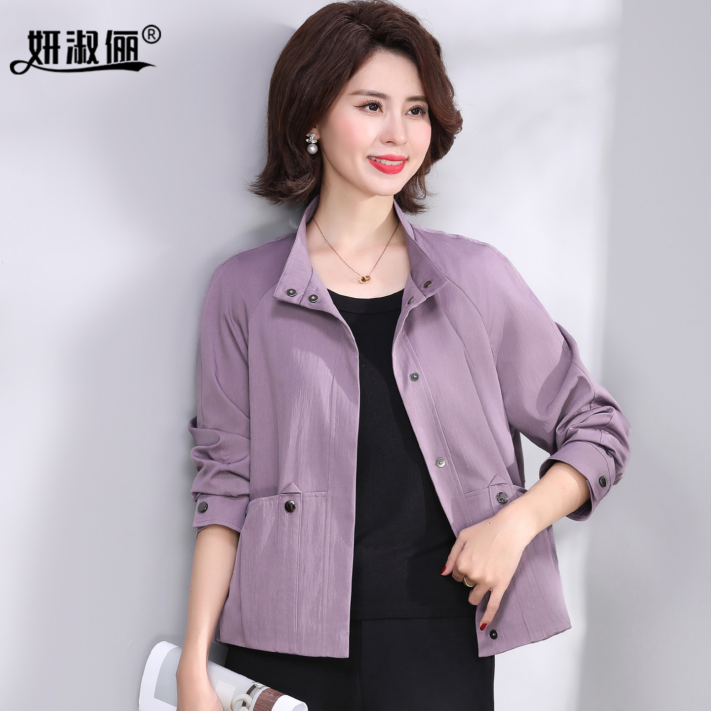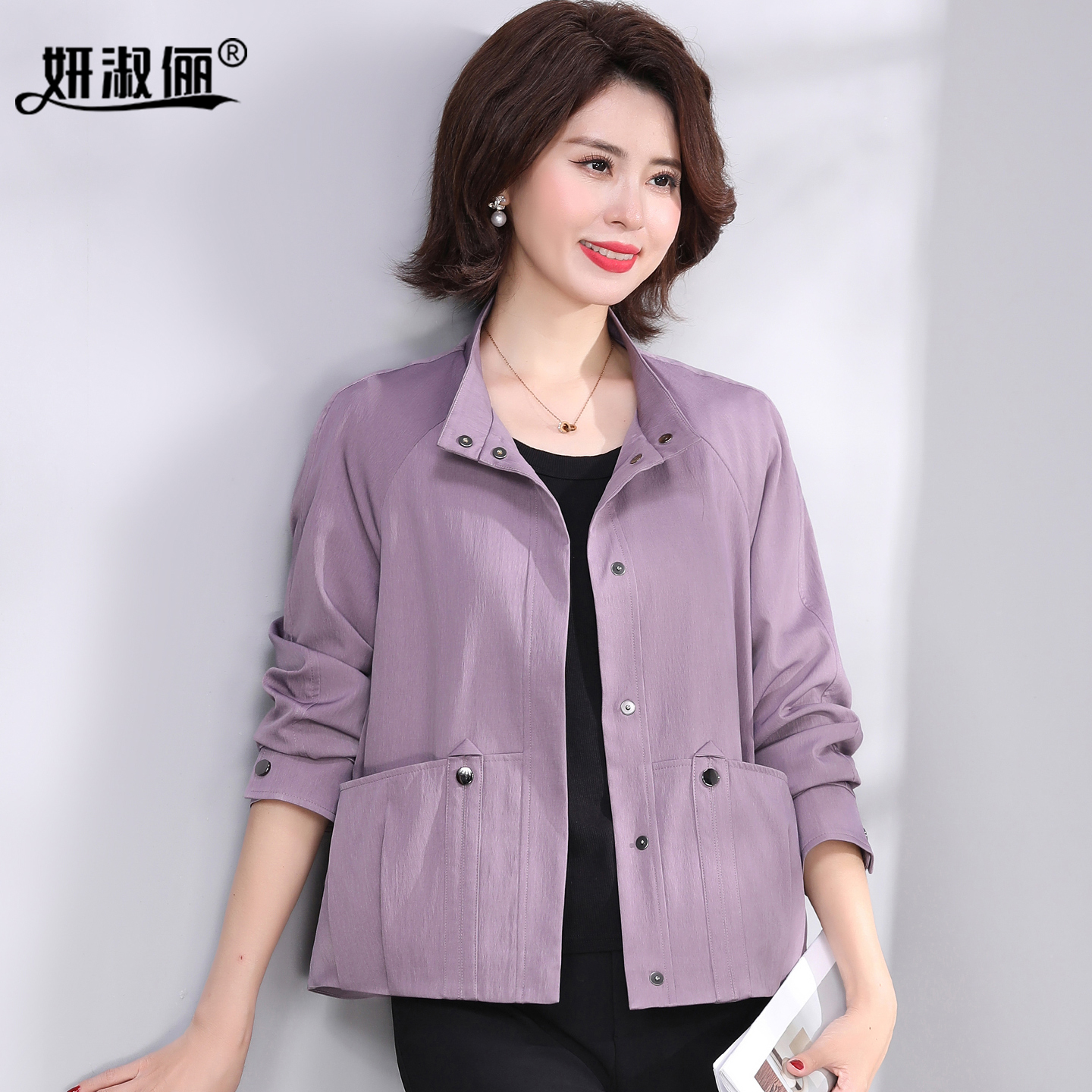 zezi短款风衣外套女纯棉双排扣新款春秋通勤外套女时尚小个子上衣
