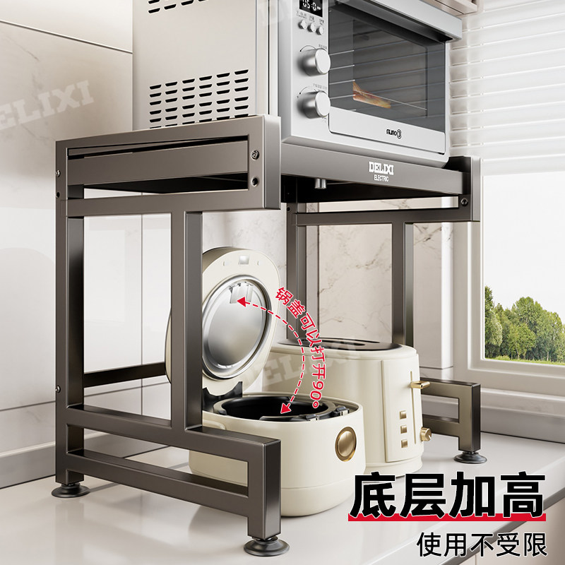 天猫德力西厨房微波炉置物架多功能台面伸缩支架家用多层烤箱收纳架子