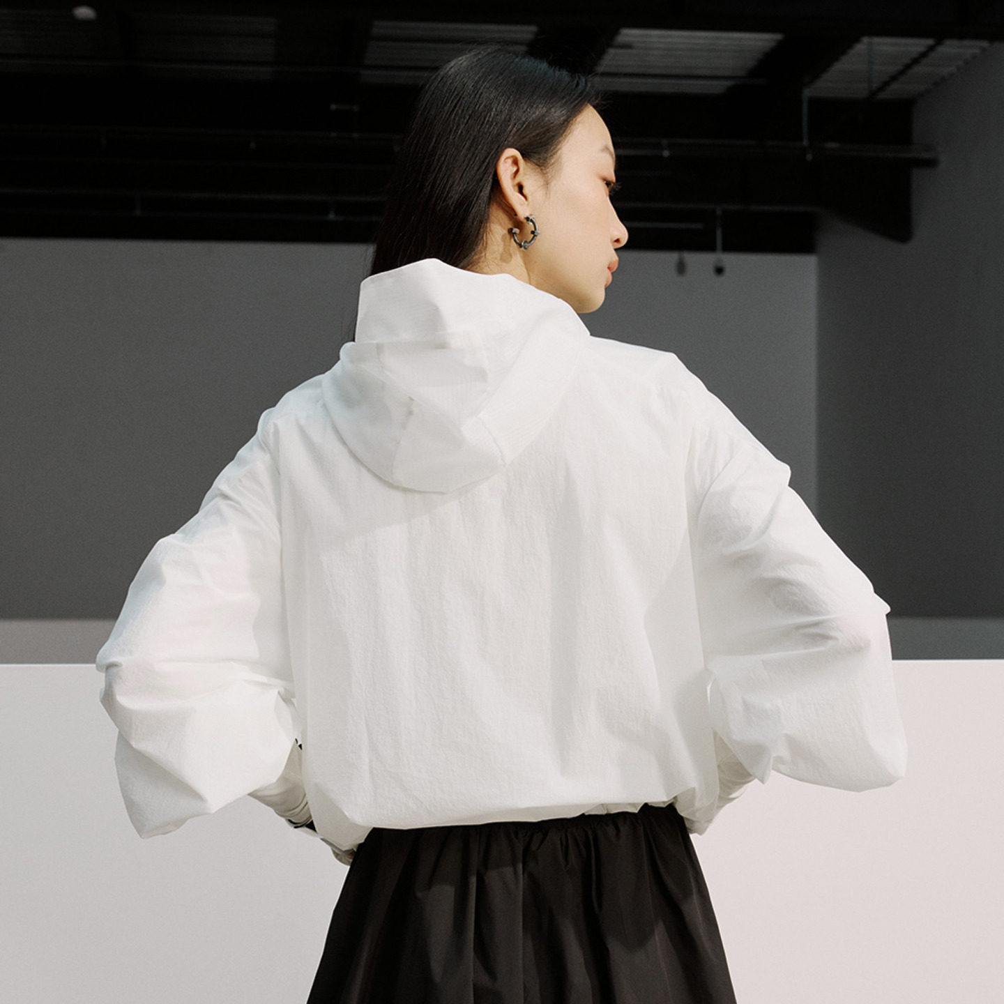 天李宁女士夏季新款户外冰感舒适针织连帽收腰修身轻薄风衣运动外套