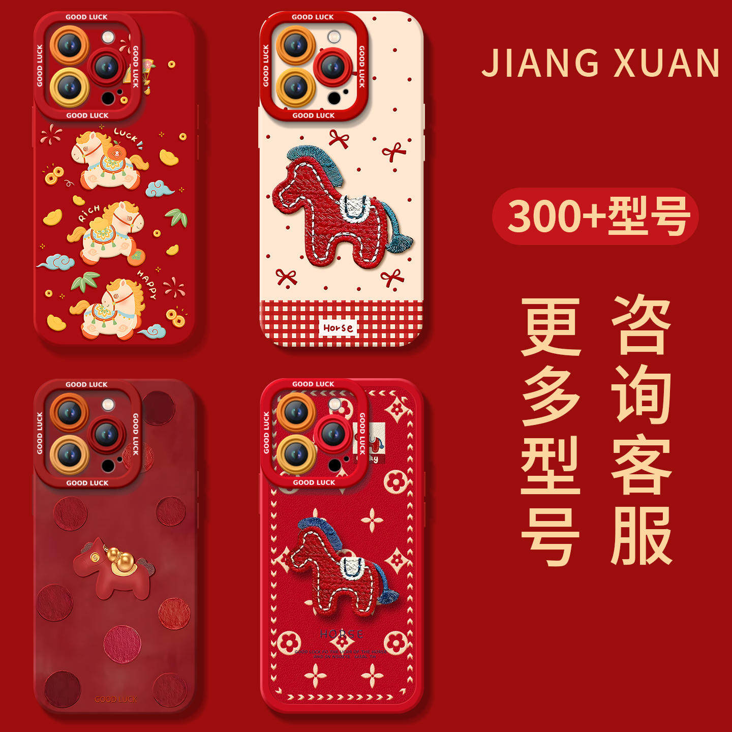 天猫刺绣小马适用苹果16promax手机壳新款iphone17pro套14plus新年款15保护13的xs马年11全包xr高级感12本命年红x