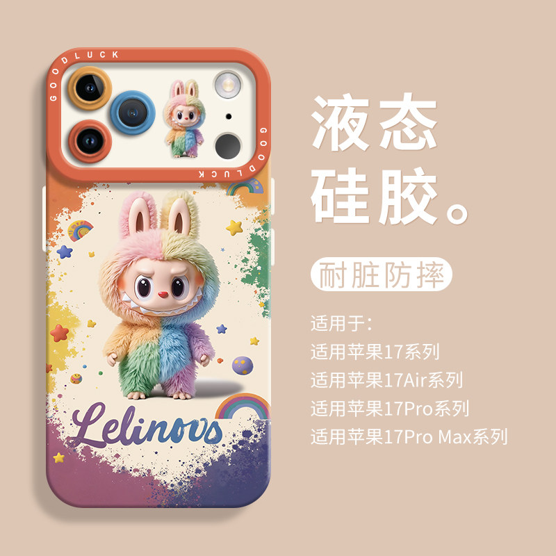 天猫可爱彩色拉卡适用苹果17promax手机壳16新款15小众12情侣17液态硅胶plus卡通13情侣xs女iPhone网红14防摔软壳