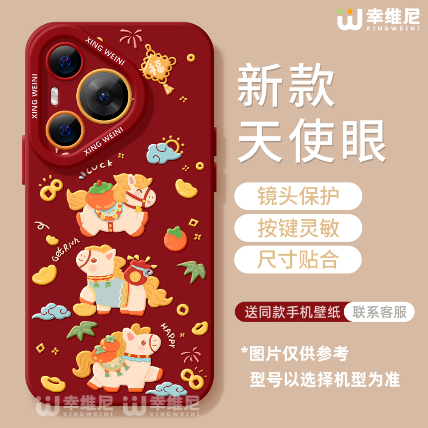 天猫适用华为Pura80手机壳马年pura70pro保护套p40新年ultra硅胶30红色50pro全包p70柿子小马p60art软p50外p80pro