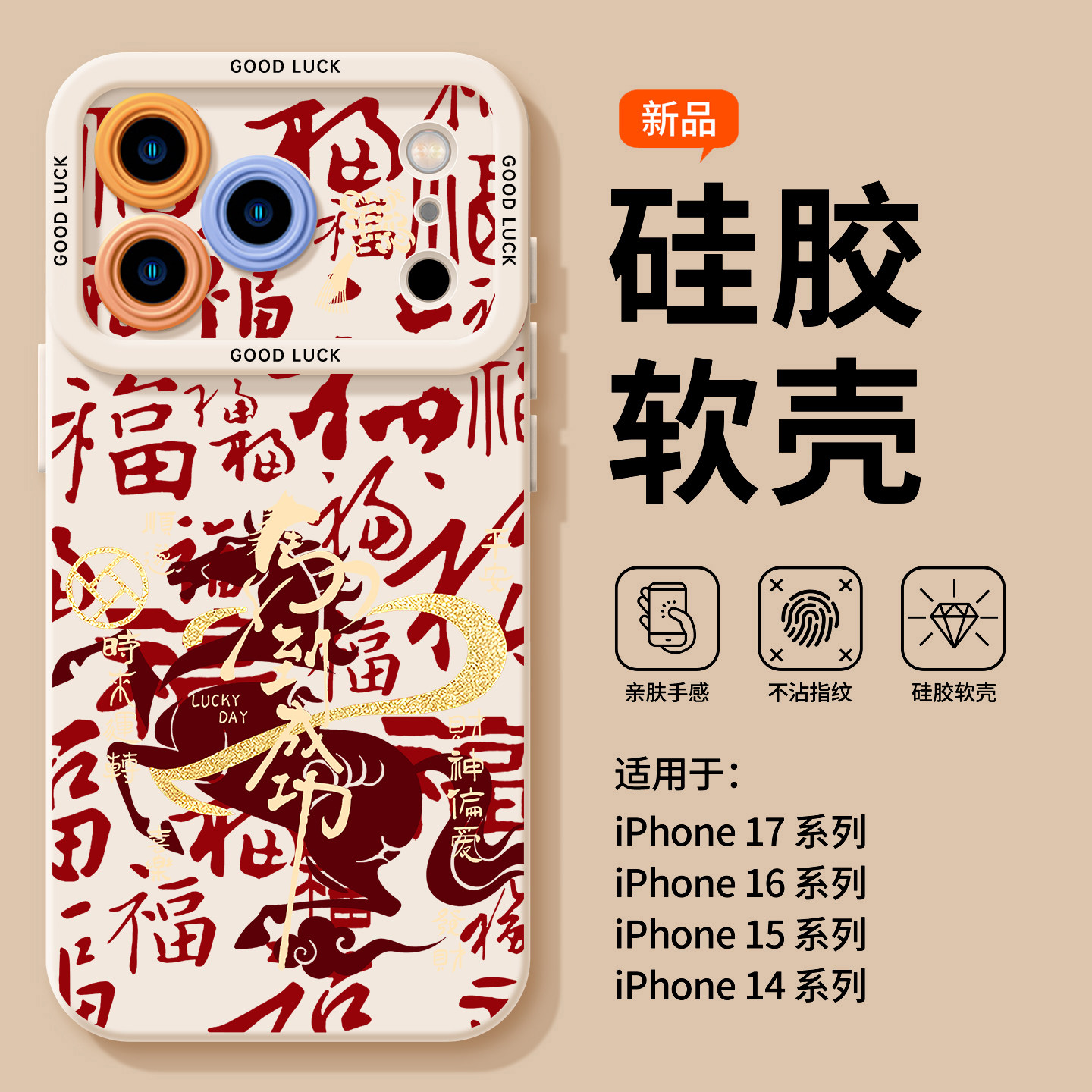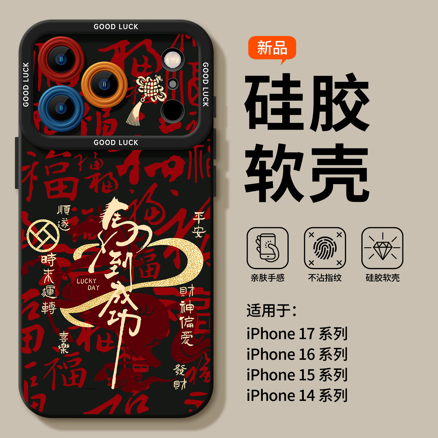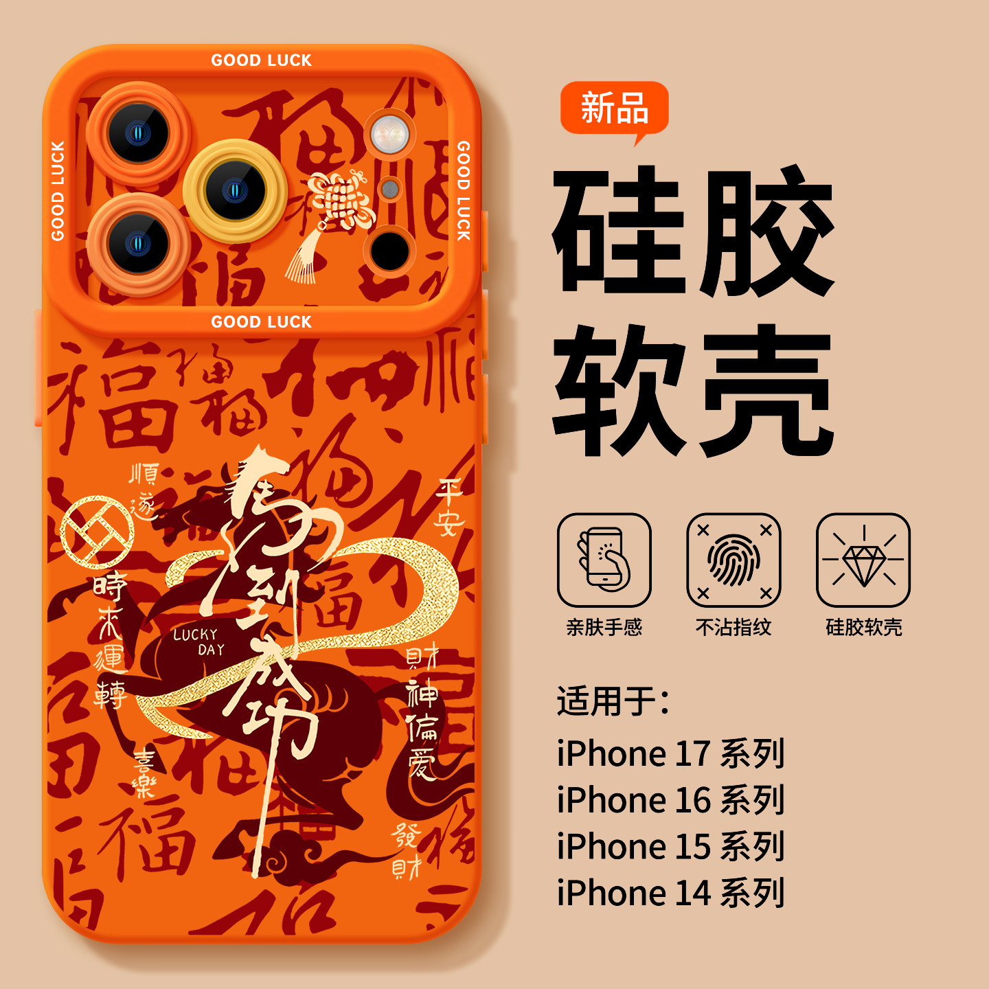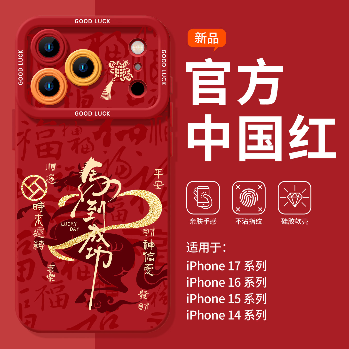 天猫适用苹果17promax手机壳新年款iphone17pro保护套创意16红色喜庆13马到成功12全包防摔air带挂绳女15pm小众14