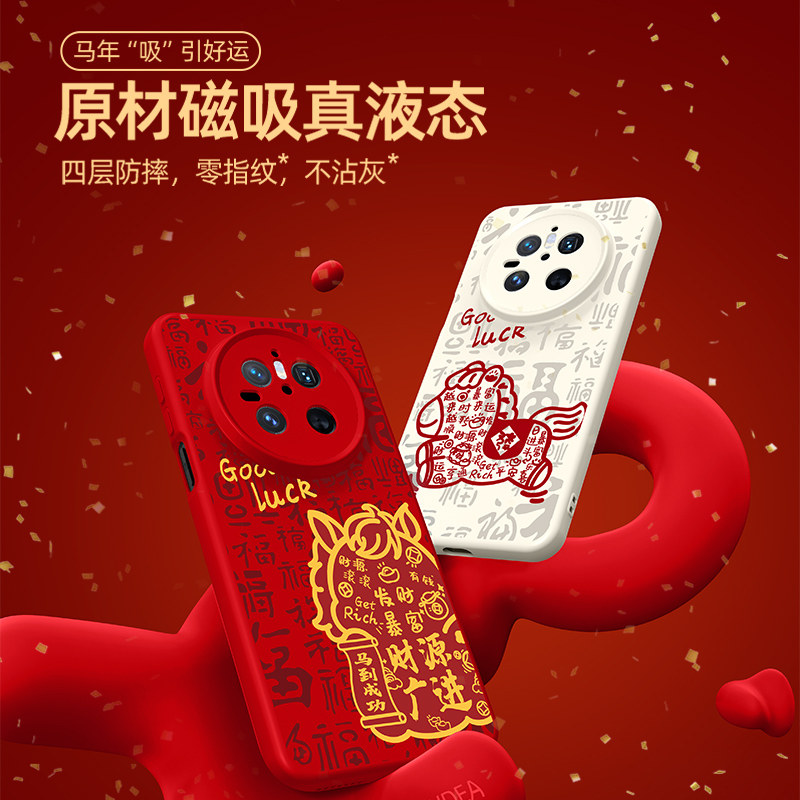 这款专为华为Pura 80 Ultra、Mate 80 Pro Max、Mate 70 Air、Nova 14 Pro及Mate 60 Pro等多款机型设计的新年限定手机壳,融合2026马年生肖元素,喜庆又时尚。采用高品质环保硅胶材质,柔软亲肤,全包镜头与四角防摔设计,有效缓冲冲击,全面保护手机。内置强力磁环,精准对齐磁吸充电,支持无线快充不脱落。精准开孔,按键灵敏,贴合机身不松动。新年红金配色搭配骏马图腾,寓意“马到成功”,是节日自用或送礼的贴心之选。