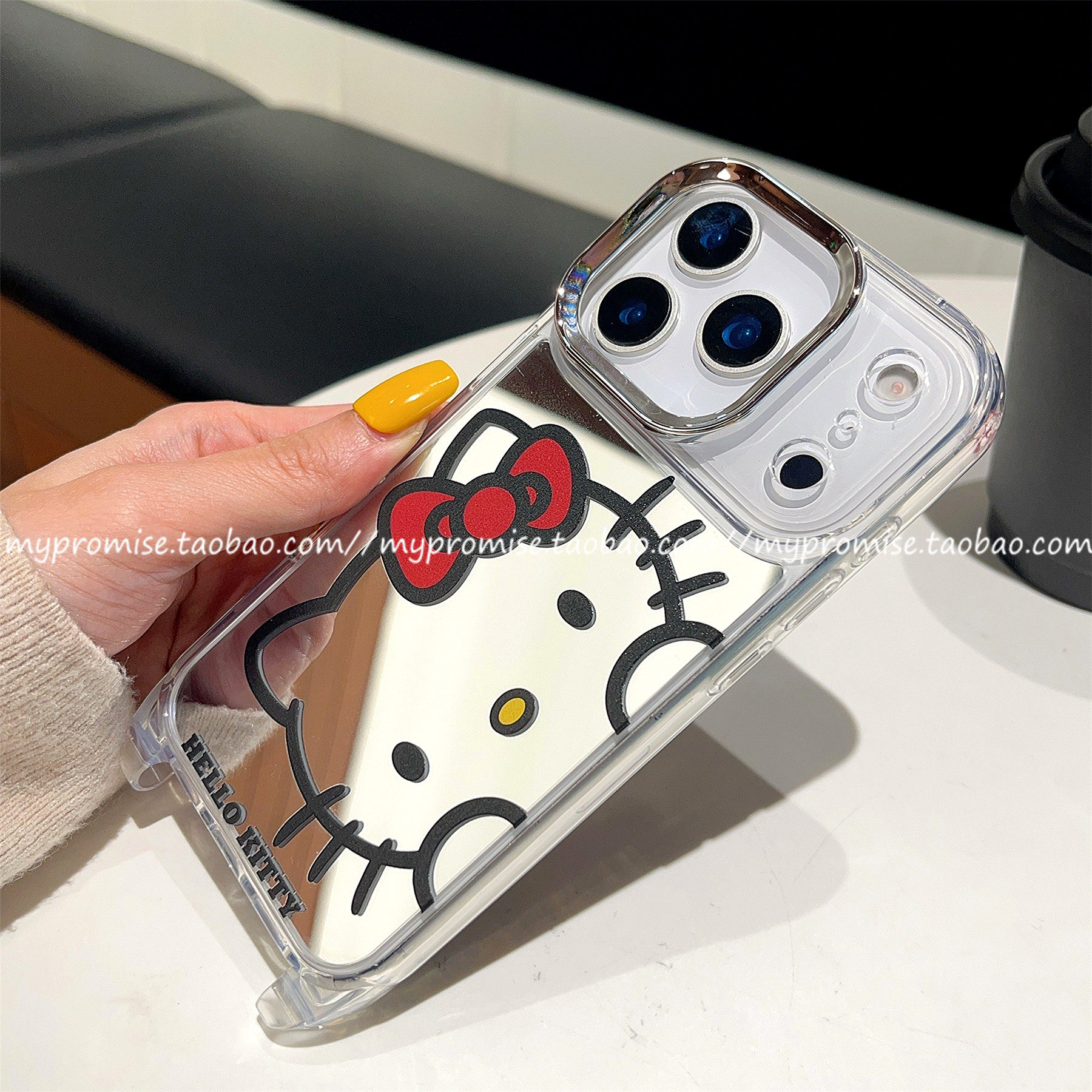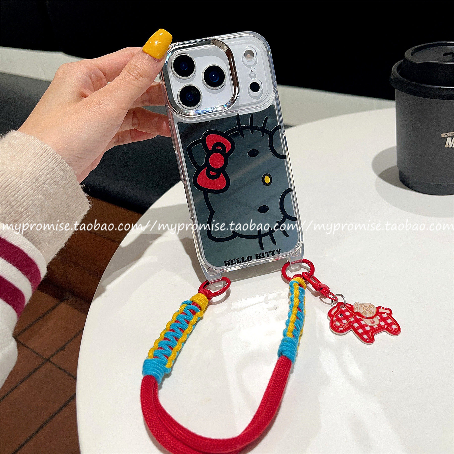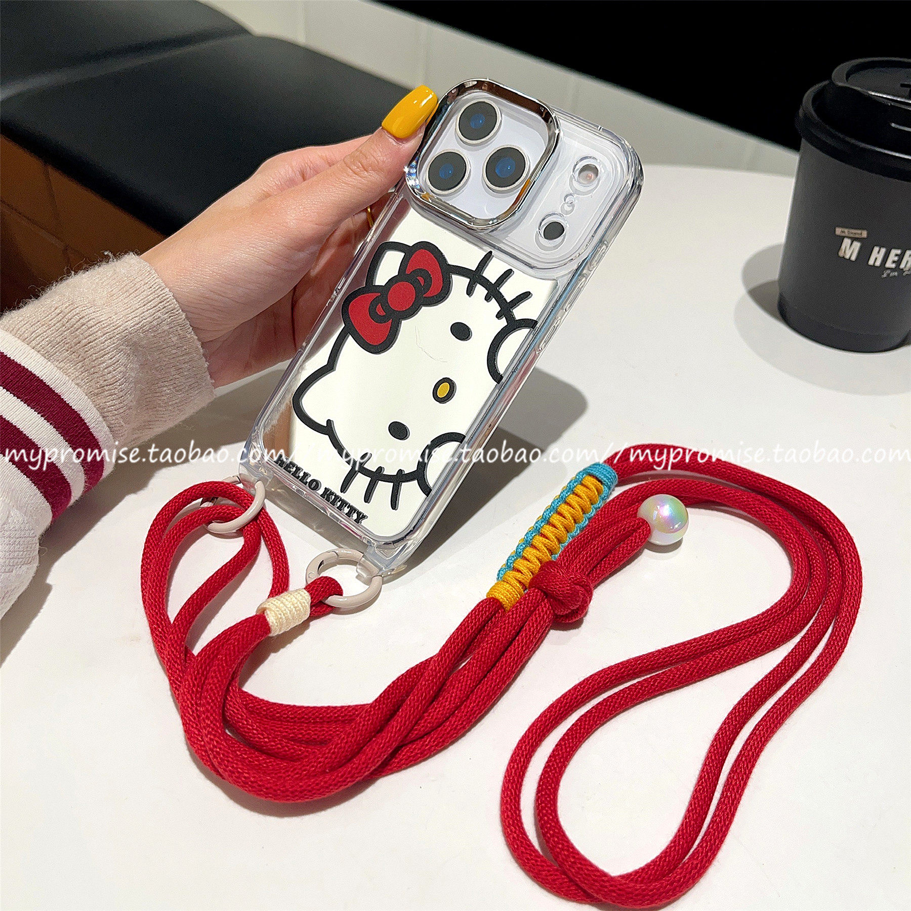 淘宝韩系ins新年补妆镜kitty猫带挂绳适用苹果17promax手机壳iphone16pro新款17pro镜面13手拎15Pro斜挎背14手绳