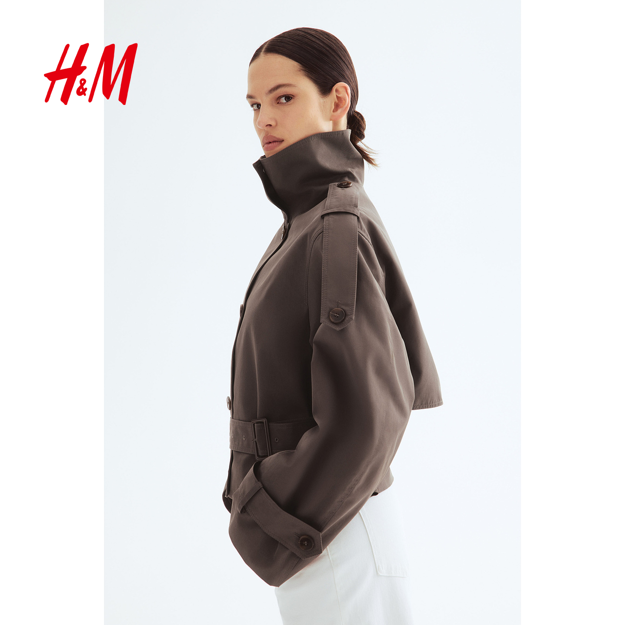 天猫HM女装风衣2025秋季新款大立领翻领风衣时尚舒适长袖上衣1266915