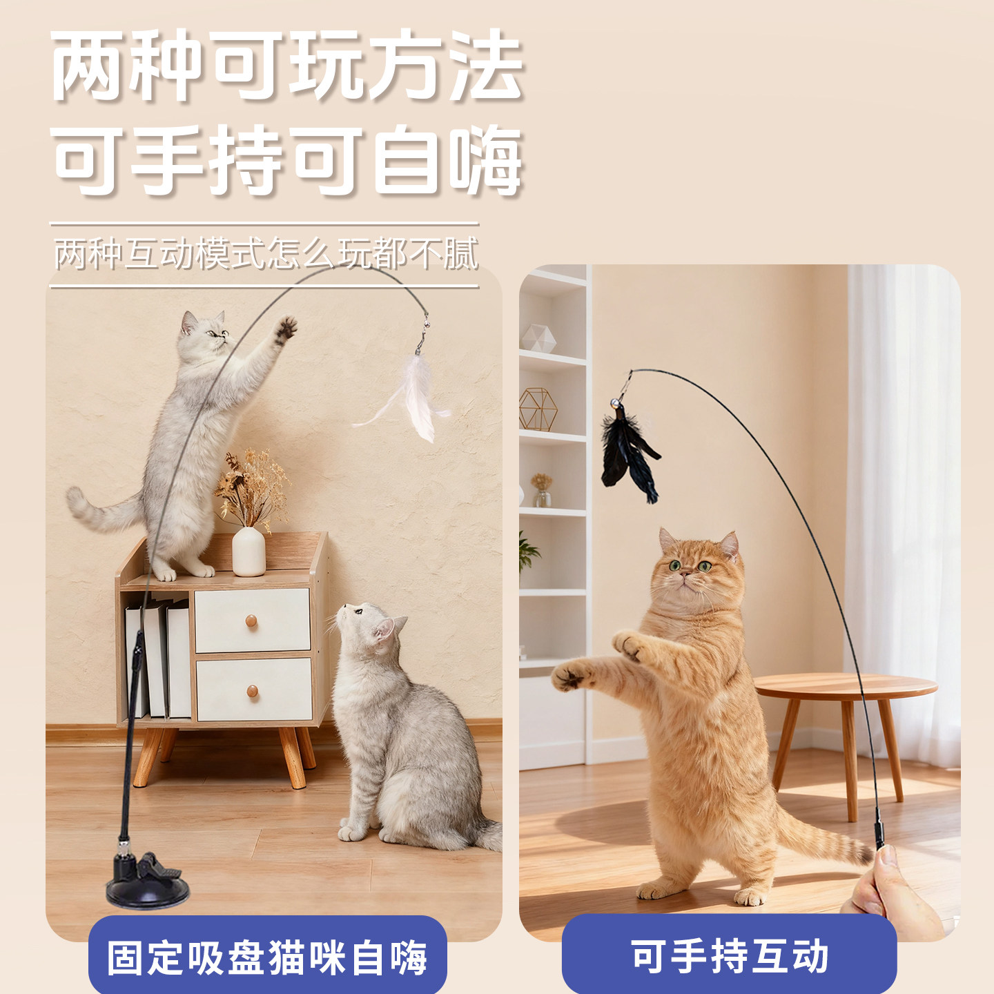 天猫猫咪玩具吸盘式逗猫棒解闷自嗨逗猫棒可替换头小猫专用耐啃咬用品