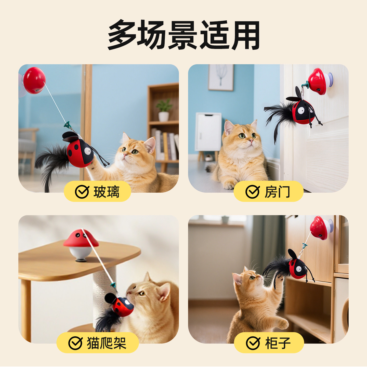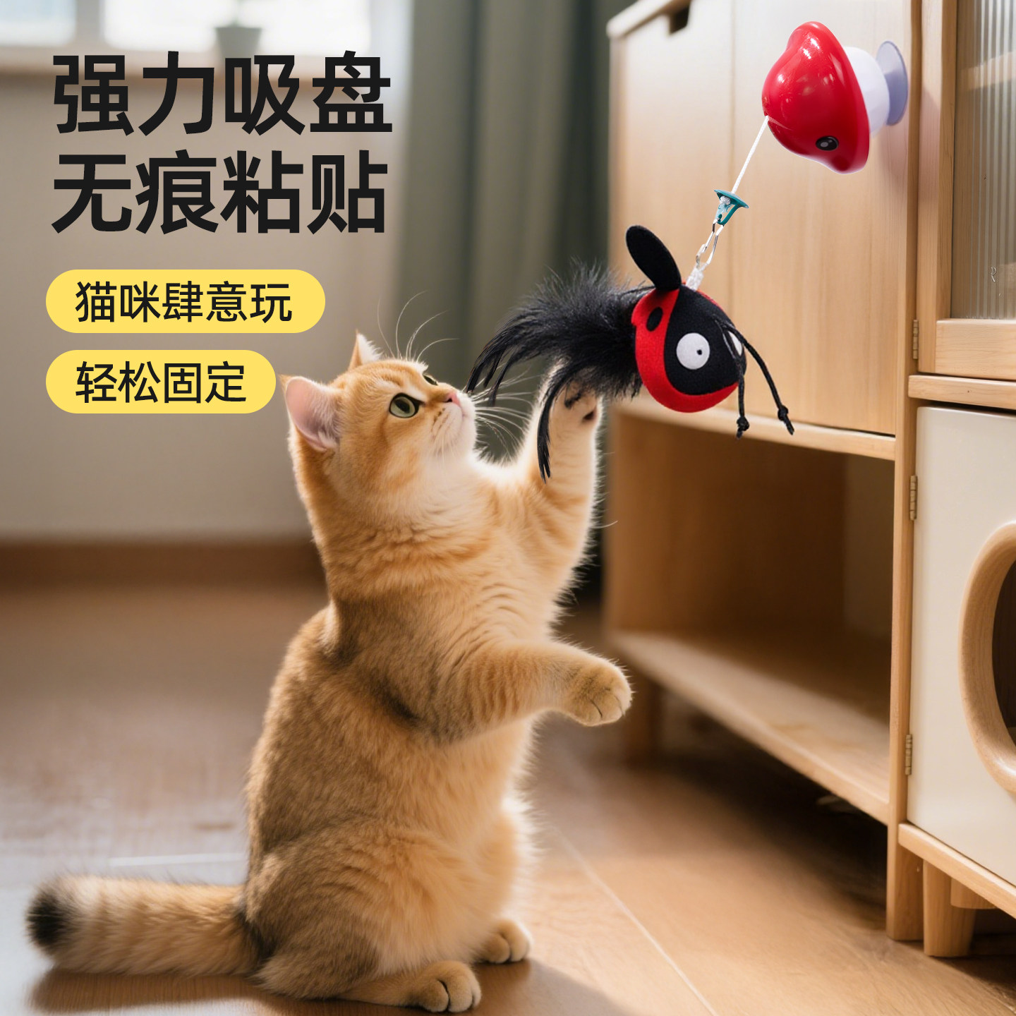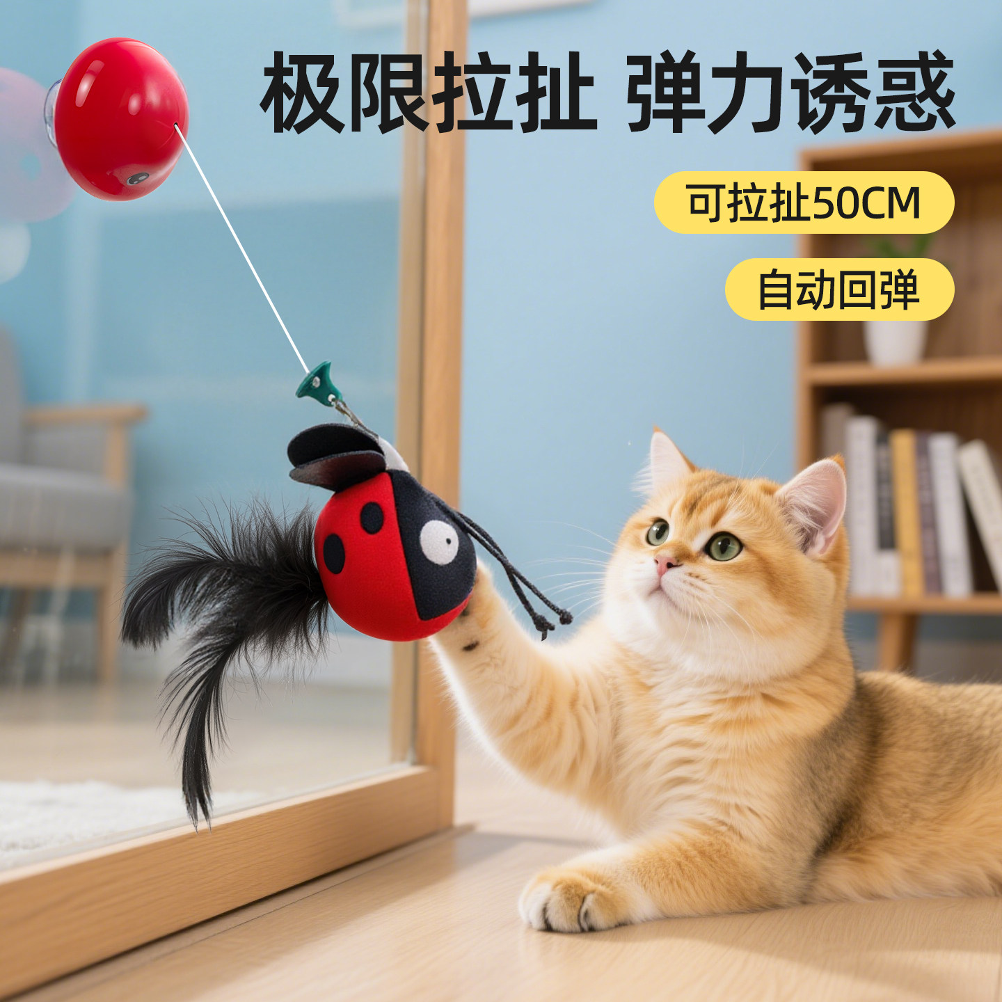 天猫猫玩具发声自嗨解闷羽毛逗猫棒吸盘自动收缩逗猫消耗体力猫咪用品