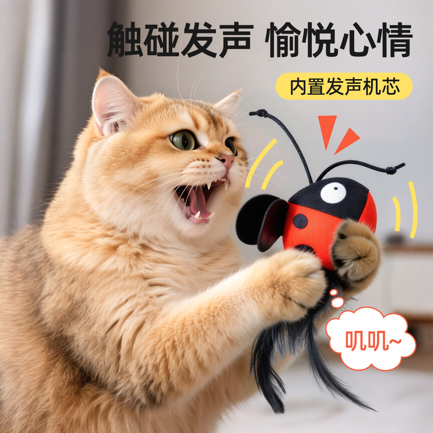 这款羽毛逗猫棒是专为猫咪设计的智能发声自嗨玩具,内置吸盘可牢固吸附于地板或墙面,无需人工操作,猫咪独自即可玩耍。逗猫棒顶端配有轻盈羽毛和铃铛,轻轻一碰即触发自动收缩与发声功能,激发猫咪捕猎本能,帮助消耗多余体力,缓解焦虑与无聊。其自动回弹设计让游戏持续不断,既锻炼反应力又促进身心健康。材质安全耐用,适合各年龄段猫咪使用。无论是白天独处还是夜间活跃期,这款玩具都能让猫咪自娱自乐,是理想的猫咪解闷用品,让宠物在家也能享受趣味互动,远离孤独与破坏行为。