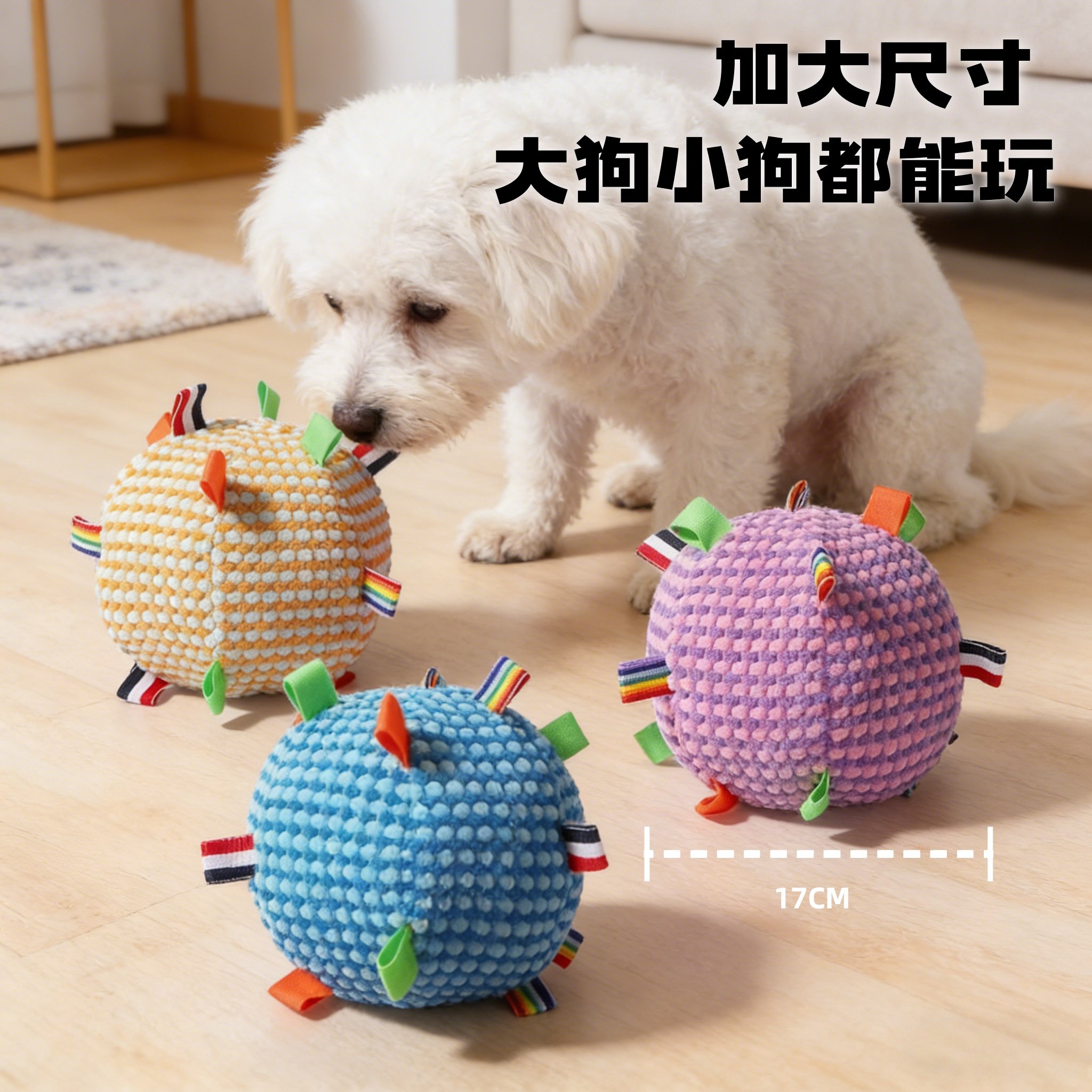 天猫狗狗发声玩具宠物训练软球抛掷响铃小猫狗叼绳球耐咬磨牙自嗨解闷