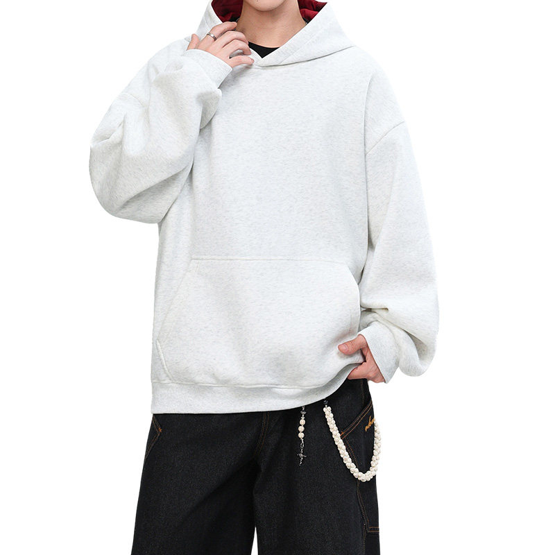 320g重磅白色卫衣男士圆领无帽秋冬款打底衫保暖内搭加绒长袖t恤