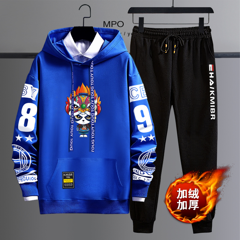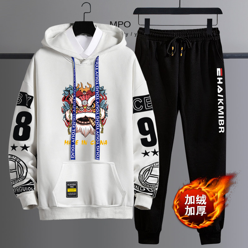 这款男士连帽卫衣套装是秋冬季节的时尚之选,采用加绒加厚设计,保暖舒适,适合日常出行与校园穿搭。整体风格融合国潮元素,简约不失个性,连帽设计增添休闲感,长袖版型贴合身形,防风又百搭。精选优质面料,柔软亲肤,耐穿不易变形。无论是搭配牛仔裤、运动裤,还是叠穿外套,都能轻松驾驭,展现青春活力。适合学生、年轻男士日常通勤、运动或聚会穿着,兼具实用性与潮流感,是秋冬季不可或缺的百搭单品。