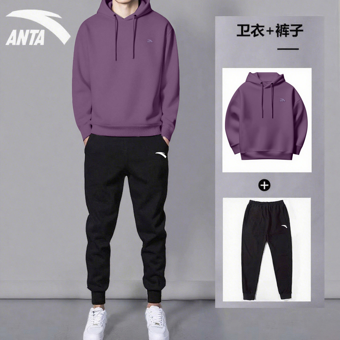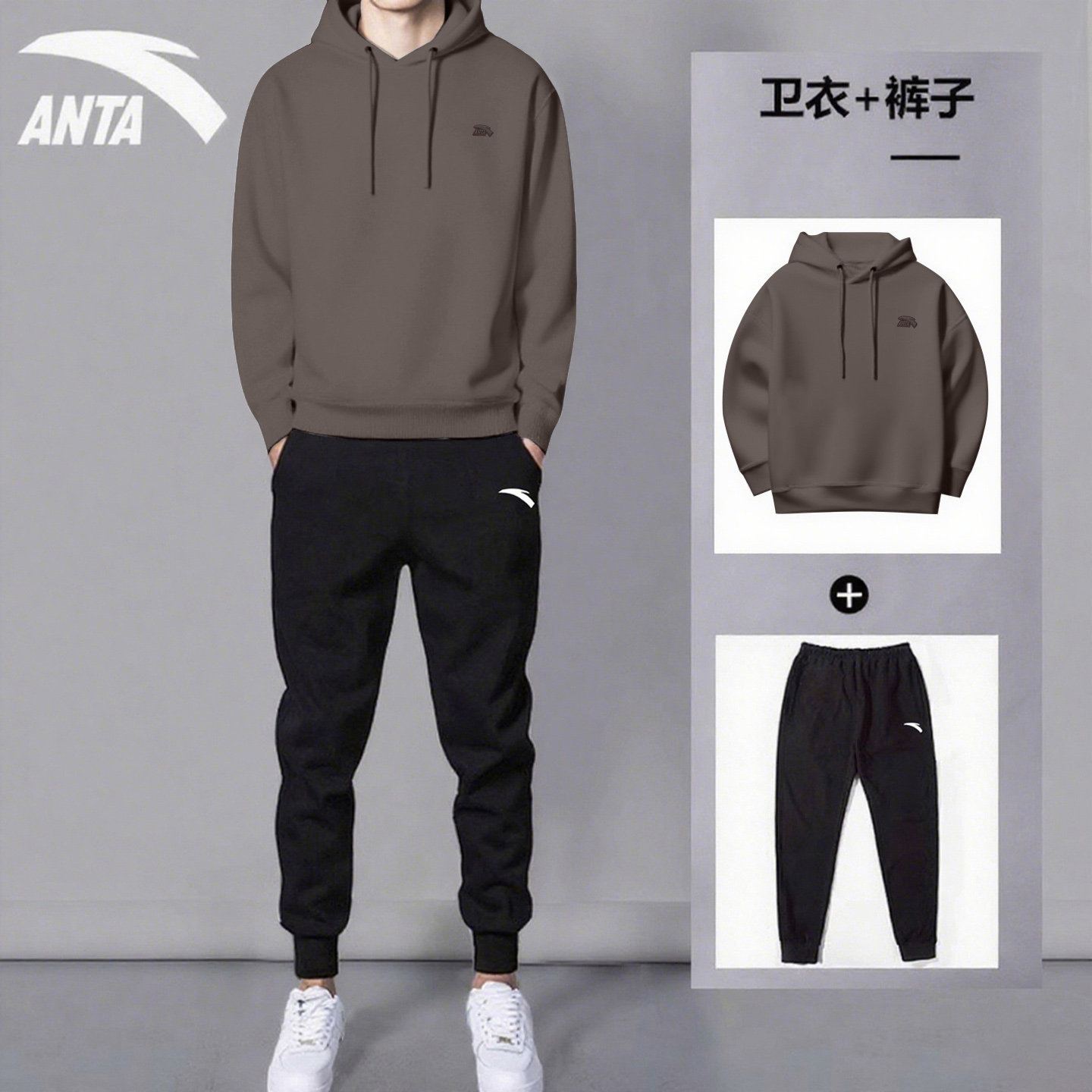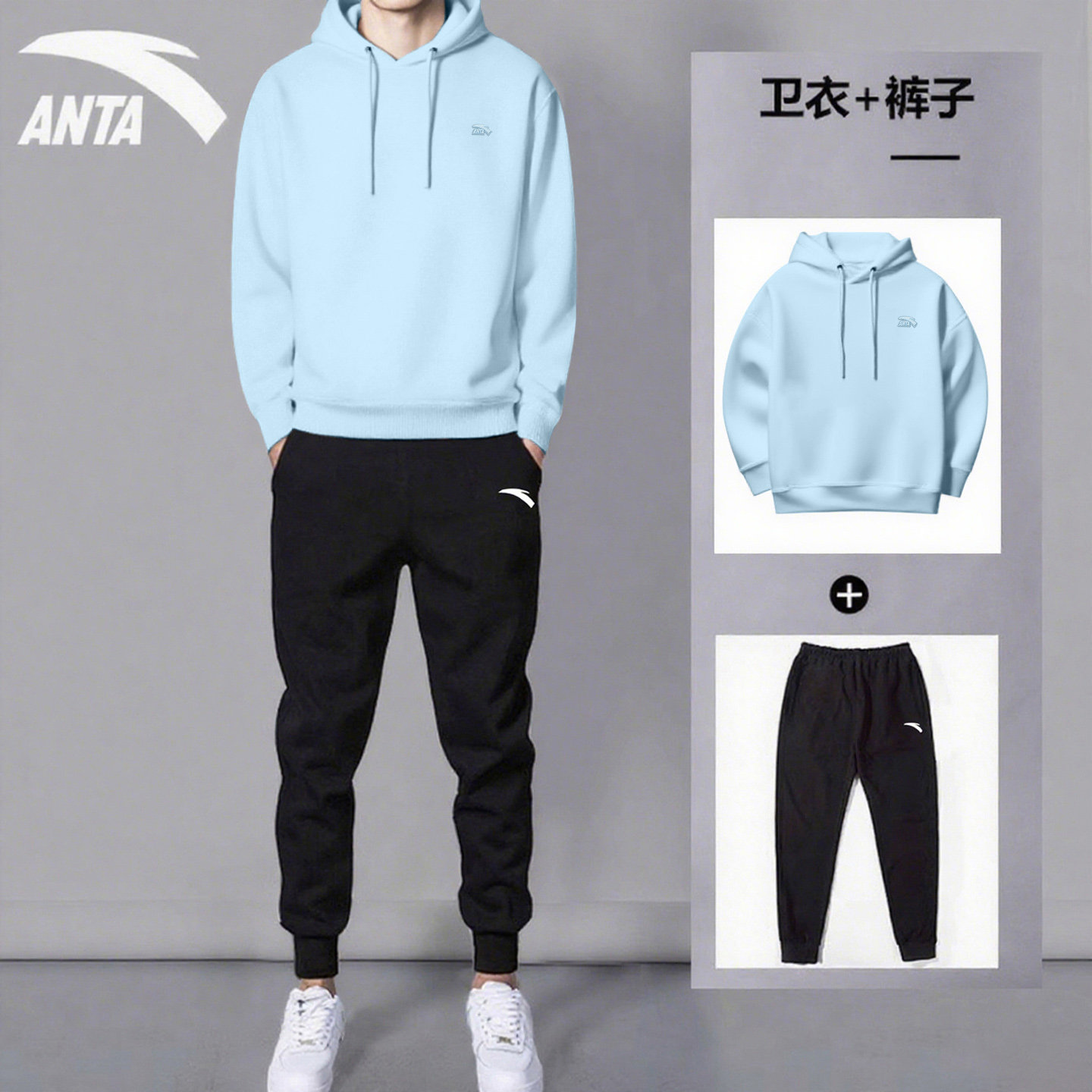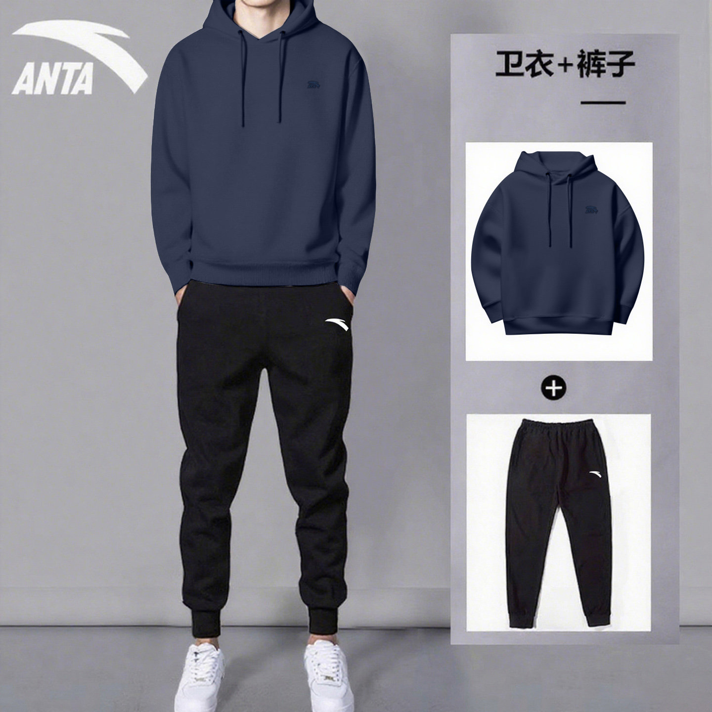 天猫安踏运动套装男2025秋季新款连帽卫衣卫裤束脚裤青少年休闲健身服