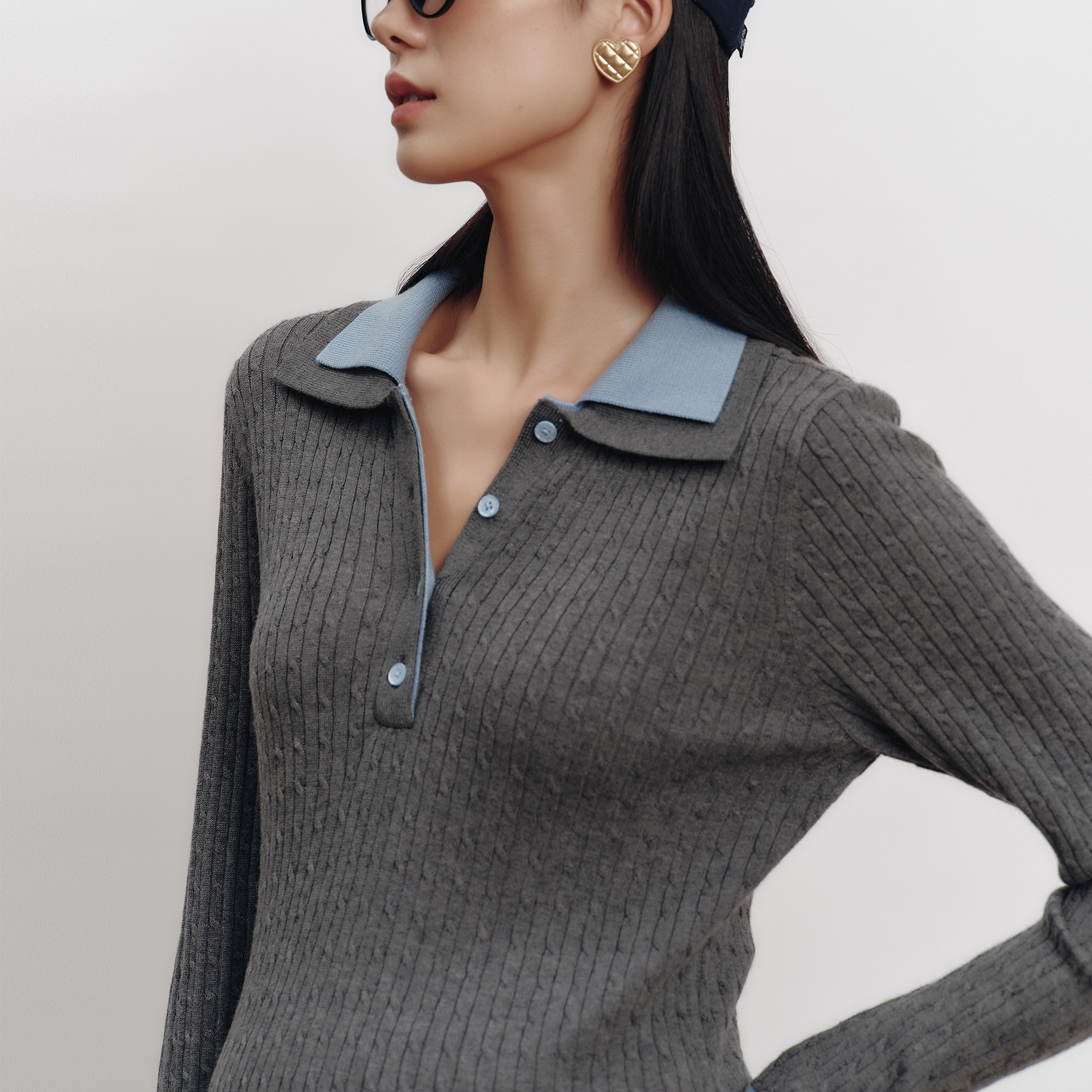 ◆AMUM孕妇装◆初代极简~慵懒多扣翻领宽松甜美糯糯针织连衣裙