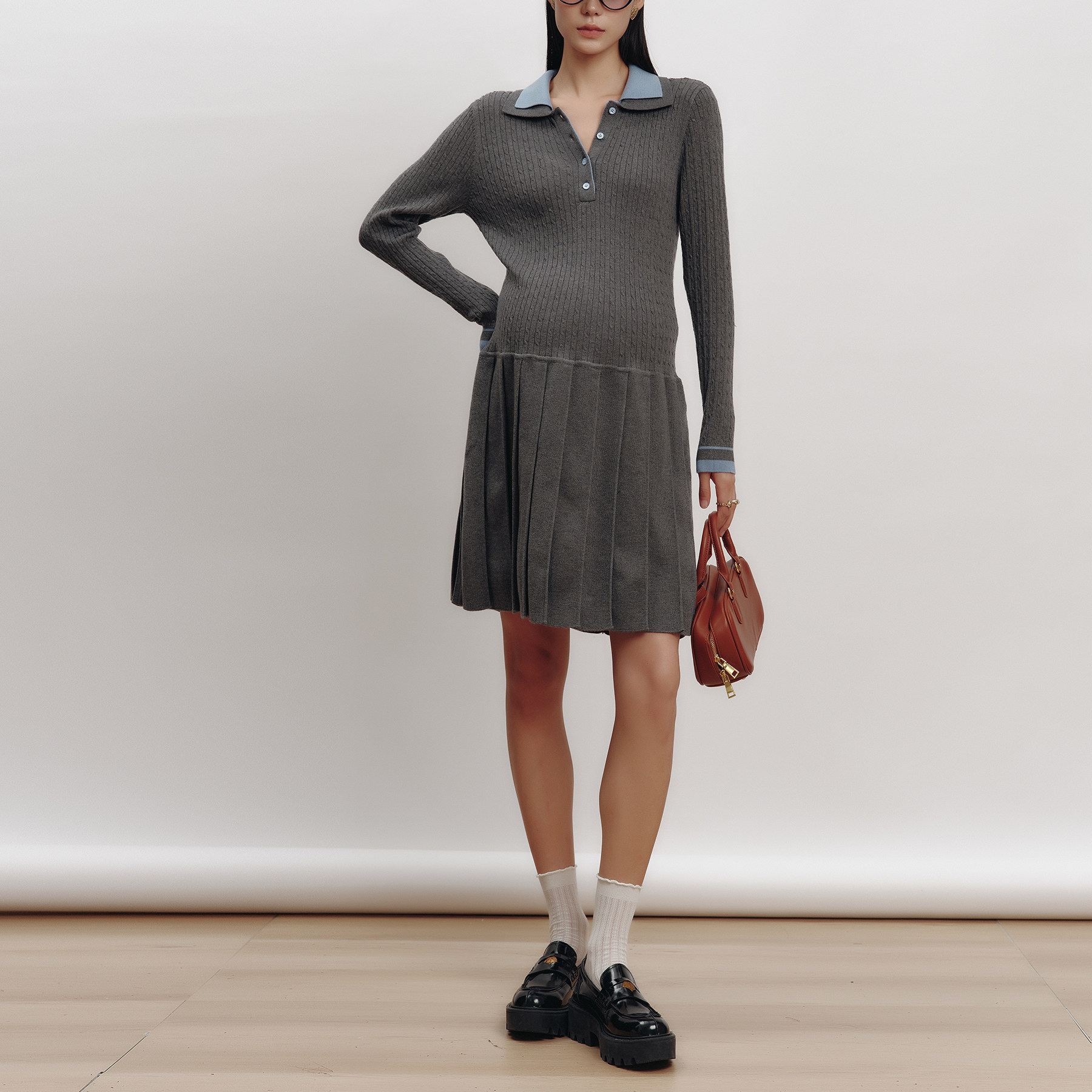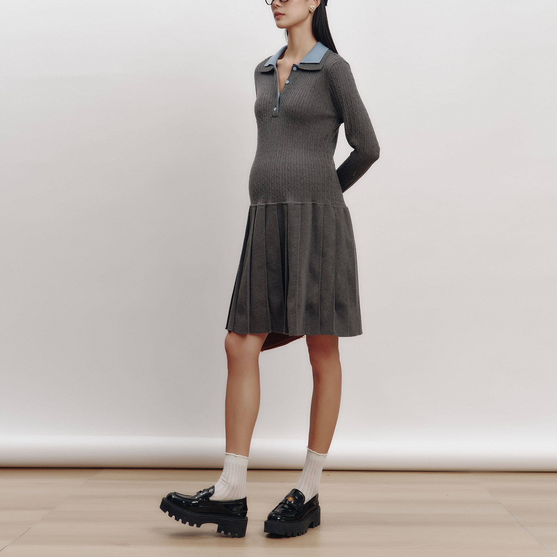 BELLYWEAR孕妇装连衣裙,专为孕期女性设计,巧妙融合时尚与舒适。采用MIU风简约优雅设计,POLO领搭配百褶毛织裙摆,既修饰身形又增添灵动气质。独特剪裁包容孕肚,孕期不显怀却依然显瘦有型。精选柔软亲肤毛织面料,透气保暖,四季皆宜。无论是日常出行、节日聚会,还是作为圣诞礼物送给准妈妈,都贴心又体面。BELLYWEAR以细节诠释母爱之美,让孕妈在特殊时期也能自信绽放,轻松穿出优雅与温柔,是孕期穿搭的理想之选。