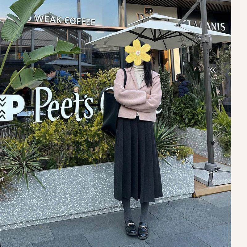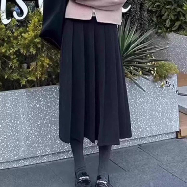 淘宝孕妇灰色半身裙秋冬高腰托腹设计感小个子加厚百褶裙长款a字半裙