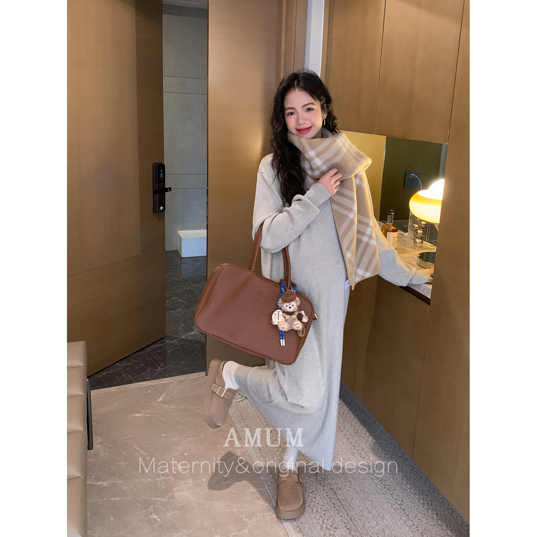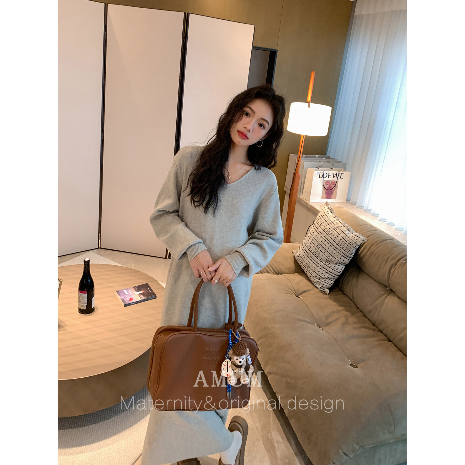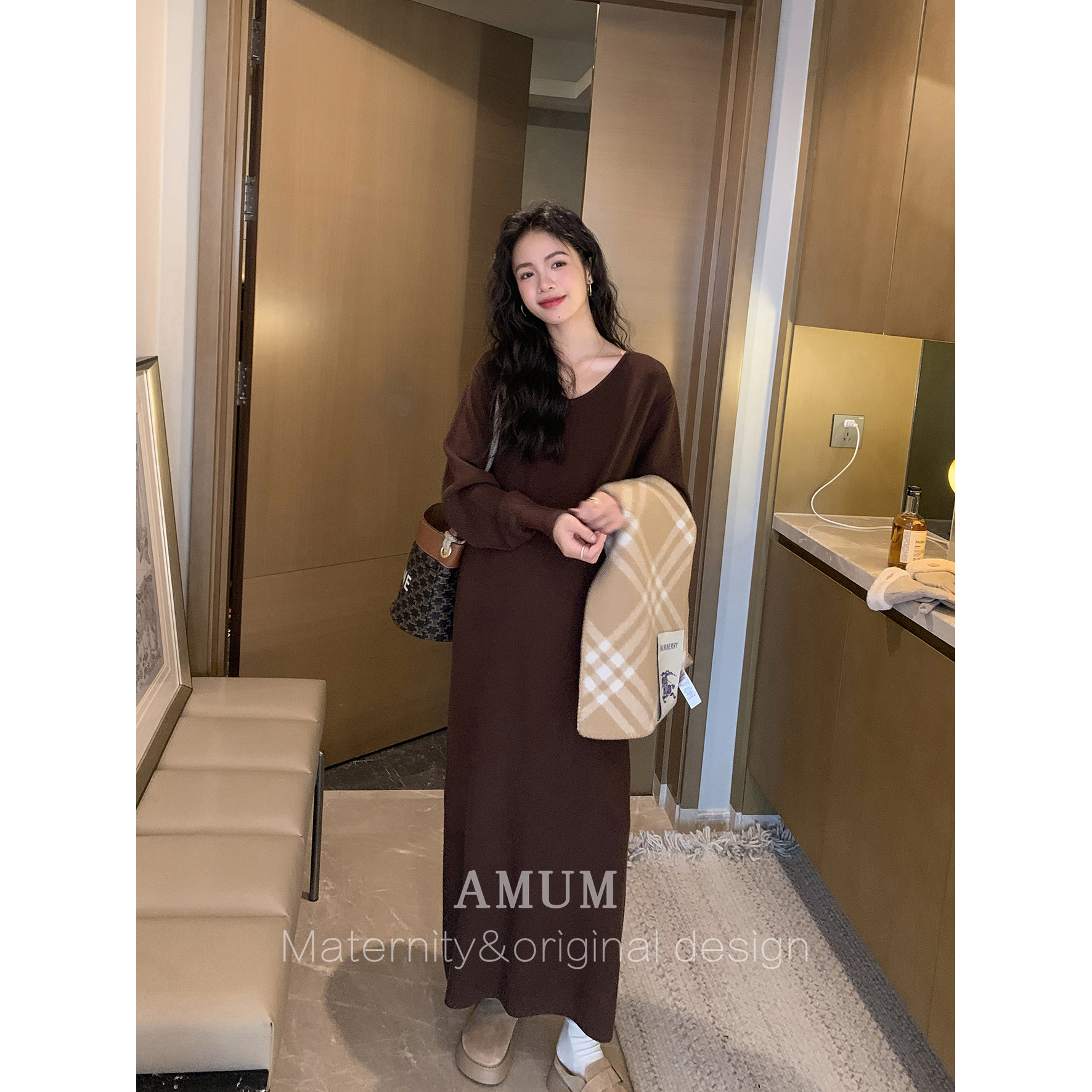 淘宝◆AMUM孕妇装◆气质担当~冬季极简休闲针织连衣裙软糯百搭打底裙