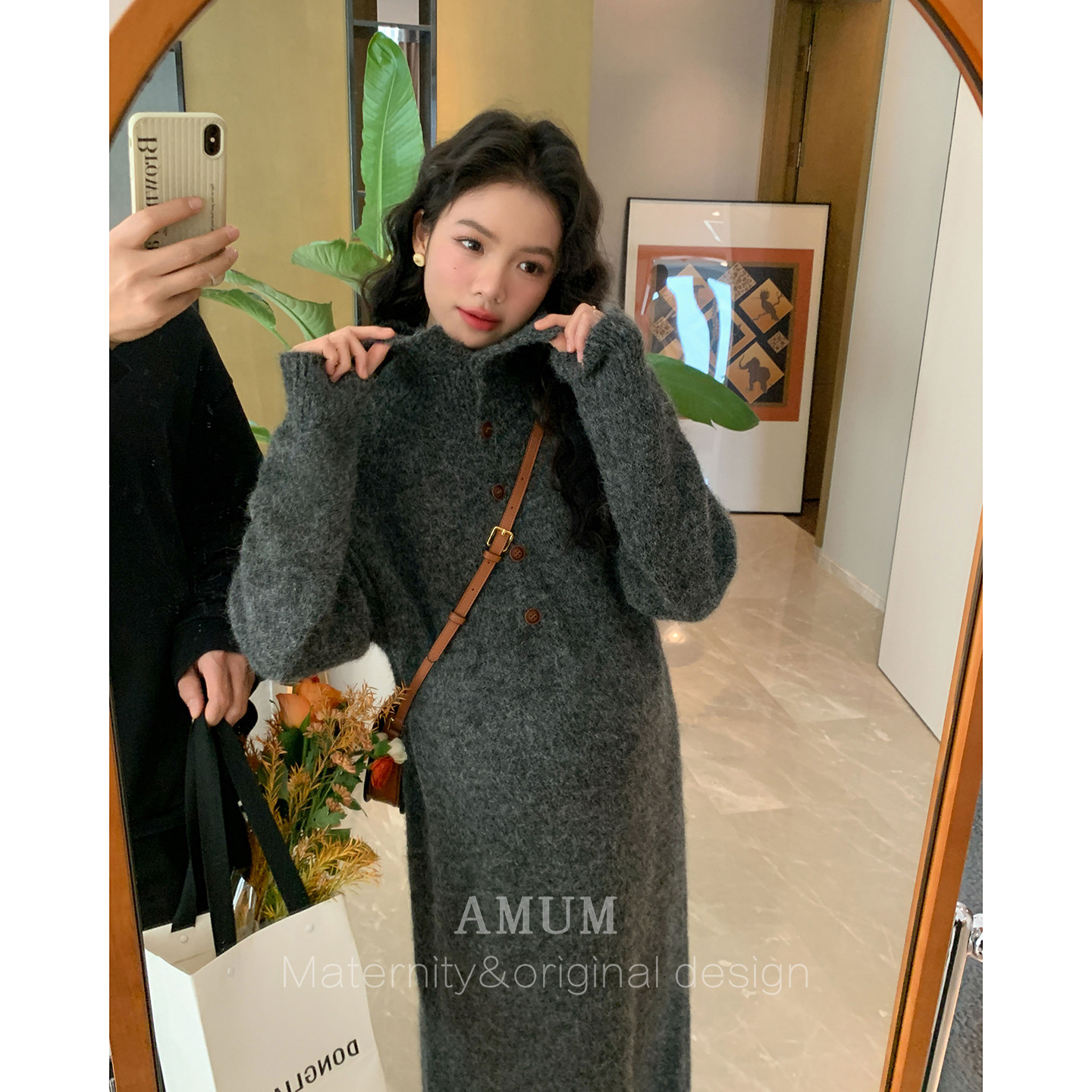 ◆AMUM孕妇装◆气质担当~冬季极简休闲针织连衣裙软糯百搭打底裙