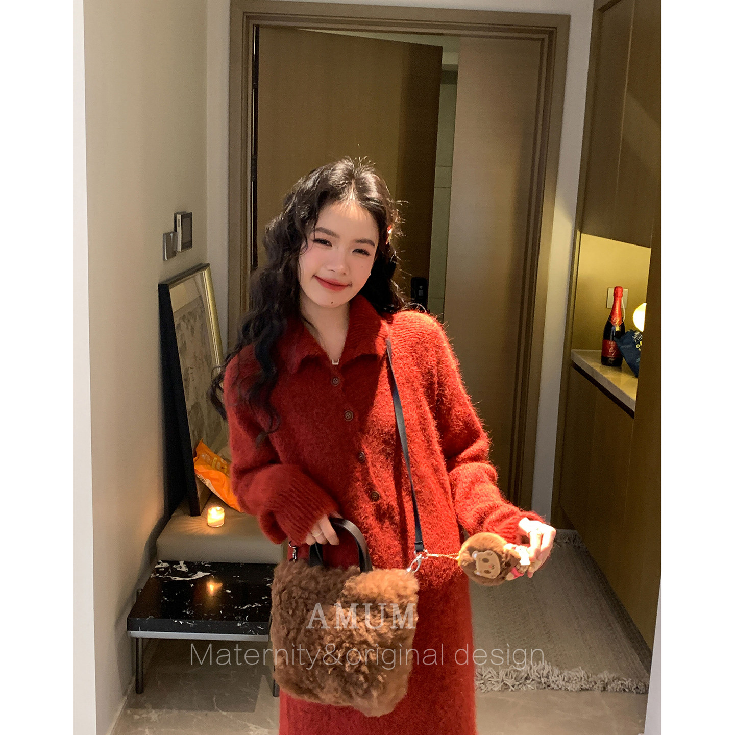 淘宝◆AMUM孕妇装◆好运buff~活力少女感新年立领慵懒风针织连衣裙